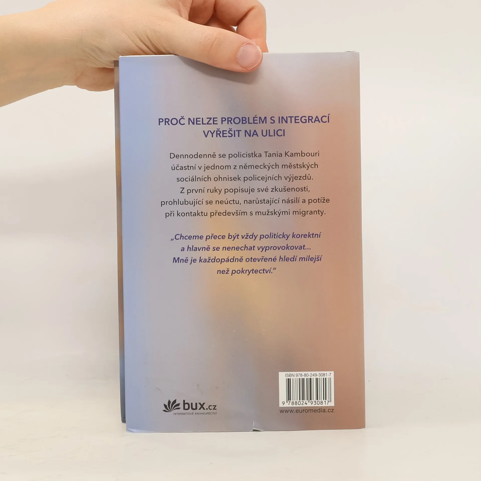 Dennodenně se policistka Tania Kambouri účastní v jednom z německých městských sociálních ohnisek policejních výjezdů. Z první ruky popisuje své zkušenosti, prohlubující se neúctu, narůstající násilí a potíže při kontaktu především s mužskými migranty. „Chceme přece být vždy politicky korektní a hlavně se nenechat vyprovokovat... Mně je každopádně otevřené hledí milejší než pokrytectví.“