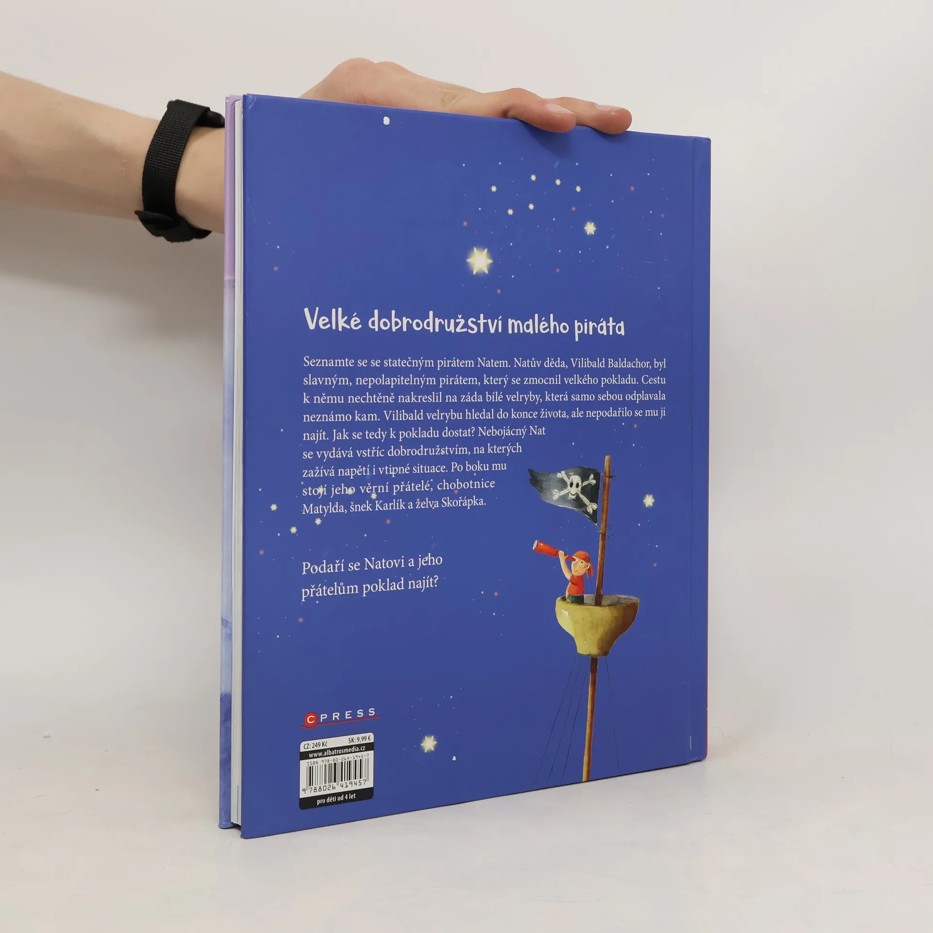 Seznamte se se statečným pirátem Natem. Natův děda, Vilibald Baldachor, byl slavným, nepolapitelným pirátem, který se zmocnil velkého pokladu. Cestu k němu nechtěně nakreslil na záda bílé velryby, která samo sebou odplavala neznámo kam. Vilibald velrybu hledal do konce života, ale nepodařilo se mu to. Jak se tedy teď k pokladu dostat? Nebojácný Nat se vydává vstříc dobrodružstvím,na kterých zažívá napětí i vtipné situace. Po boku mu stojí jeho věrní přátelé. Podaří se Natovi a jeho přátelům poklad najít?