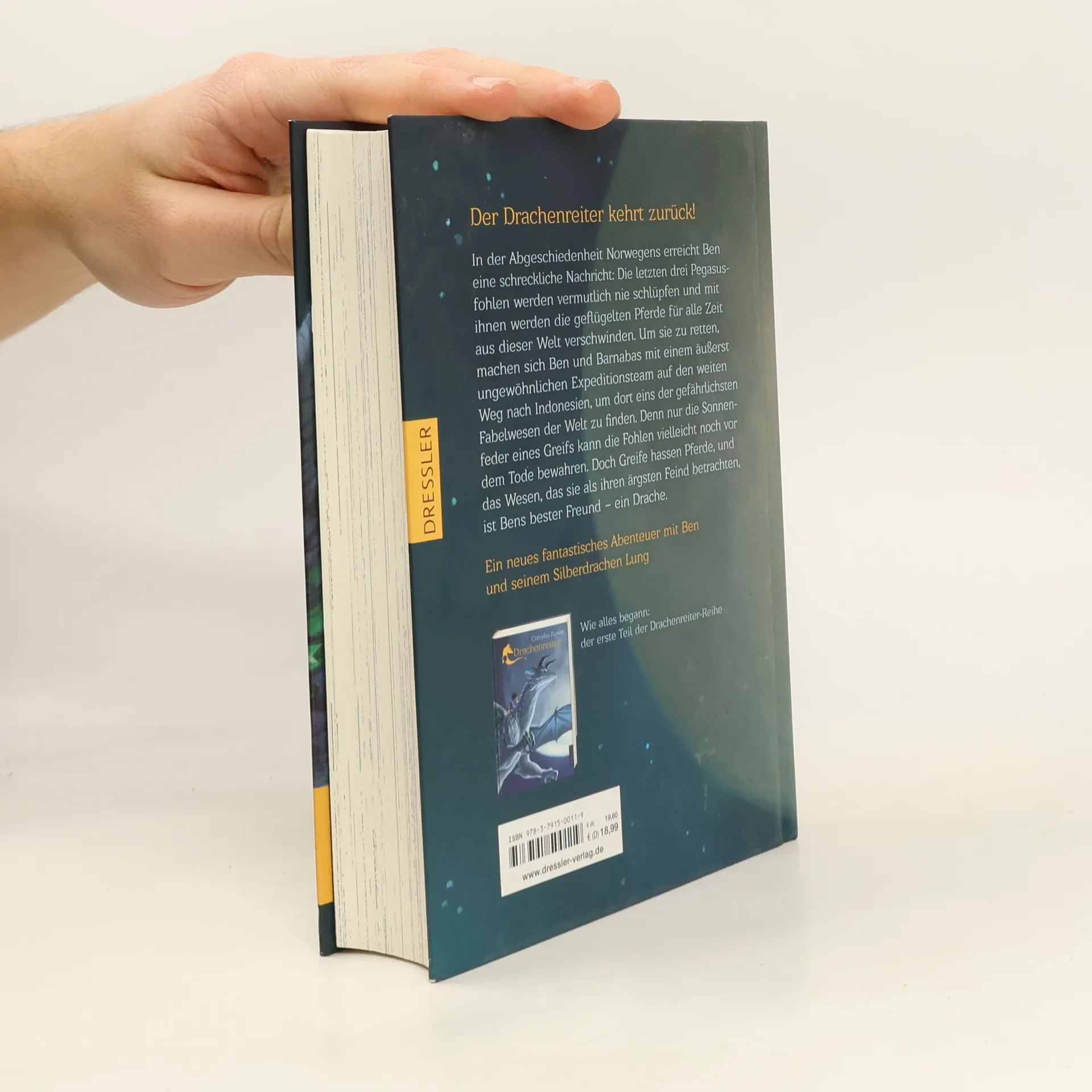 Der Drachenreiter kehrt zurück: Fortsetzung von Cornelia Funkes erfolgreichstem Kinderroman! Zwei Jahre nach ihrem Sieg über Nesselbrand erwartet Ben, Barnabas und Fliegenbein ein neues Abenteuer: Der Nachwuchs des letzten Pegasus ist bedroht! Nur die Sonnenfeder eines Greifs kann ihre Art noch retten. Gemeinsam mit einer fliegenden Ratte, einem Fjordtroll und einer nervösen Papageiin reisen die Gefährten nach Indonesien. Auf der Suche nach dem gefährlichsten aller Fabelwesen merken sie schnell: sie brauchen die Hilfe eines Drachens und seines Kobolds. Die Feder eines Greifs ist Lesegenuss vom Feinsten: spannend, magisch und atmosphärisch. Ein großer, fantastischer Roman der international gefeierten, preisgekrönten Autorin Cornelia Funke.