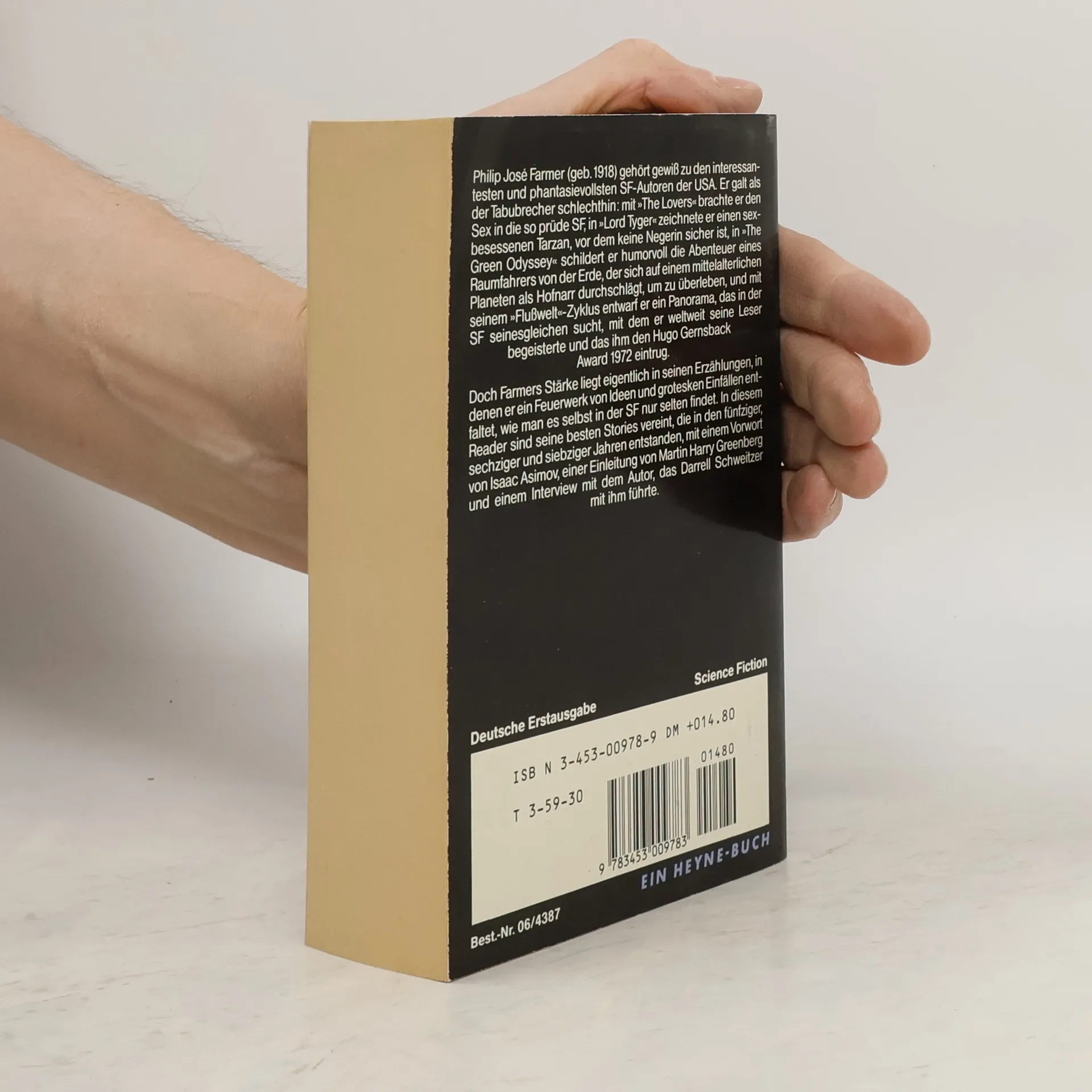 Philip José Farmer (geb. 1918) gehört gewiss zu den interessantesten und phantasievollsten SF-Autoren der USA. Er galt als der Tabubrecher schlechthin: mit The Lovers brachte er den Sex in die so prüde SF, in Lord Tyger zeichnete er einen sexbesessenen Tarzan, vor dem keine Negerin sicher ist, in The Green Odyssey schildert er humorvoll die Abenteuer eines Raumfahrers von der Erde, der sich auf einem mittelalterlichen Planten als Hofnarr durchschlägt, um zu überleben, und mit seinem Flusswelt-Zyklus entwarf er ein Panorama, das in der SF seinesgleichen sucht, mit dem er weltweit seine Leser begeisterte und das ihm den Hugo Gernsback Award 1972 eintrug.Doch Farmer Stärke liegt eigentlich in seinen Erzählungen, in denen er ein Feuerwerk von Ideen und grotesken Einfällen entfaltet, wie man es selbst in der SF nur selten findet. In diesem Reader sind seine besten Stories vereint, die in den fünfziger, sechziger und siebziger Jahren entstanden, mit einem Vorwort von Isaac Asimov, einer Einleitung von Martin Harry Greenberg und einem Interview mit dem Autor, das Darrel Schweitzer mit ihm führte.