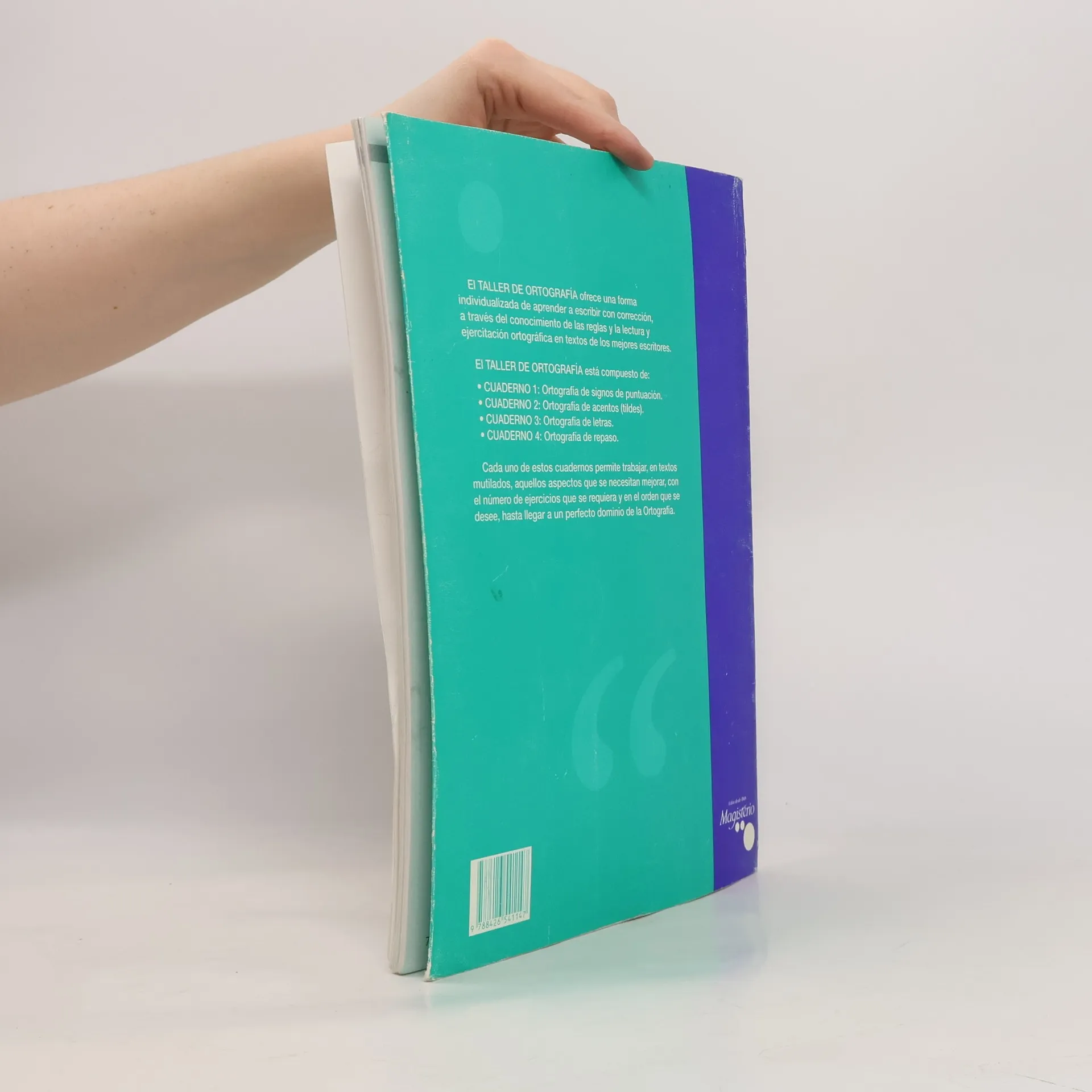 EL TALLER DE ORTOGRAFIA, ofrece una forma individualizada de aprender a escribir con corrección, a través del conocimiento de las reglas y la lectura y ejercitación ortográfica en textos de los mejores escritores. EL TALLER DE ORTOGRAFÍA está compuesto de: - CUADERNO 1: Ortografía de signos de puntuación. - CUADERNO 2: Ortografía de acentos (tildes). - CUADERNO 3: Ortografía de letras. - Cuaderno 4: Ortografía de repaso. Cada uno de estos cuadernos permite trabajar, en textos mutilados, aquellos aspectos que se necesitan mejorar, con el número de ejercicios que se requiera y en el orden qque se desee, hasta llegar a un perfecto dominio de la Ortografía.