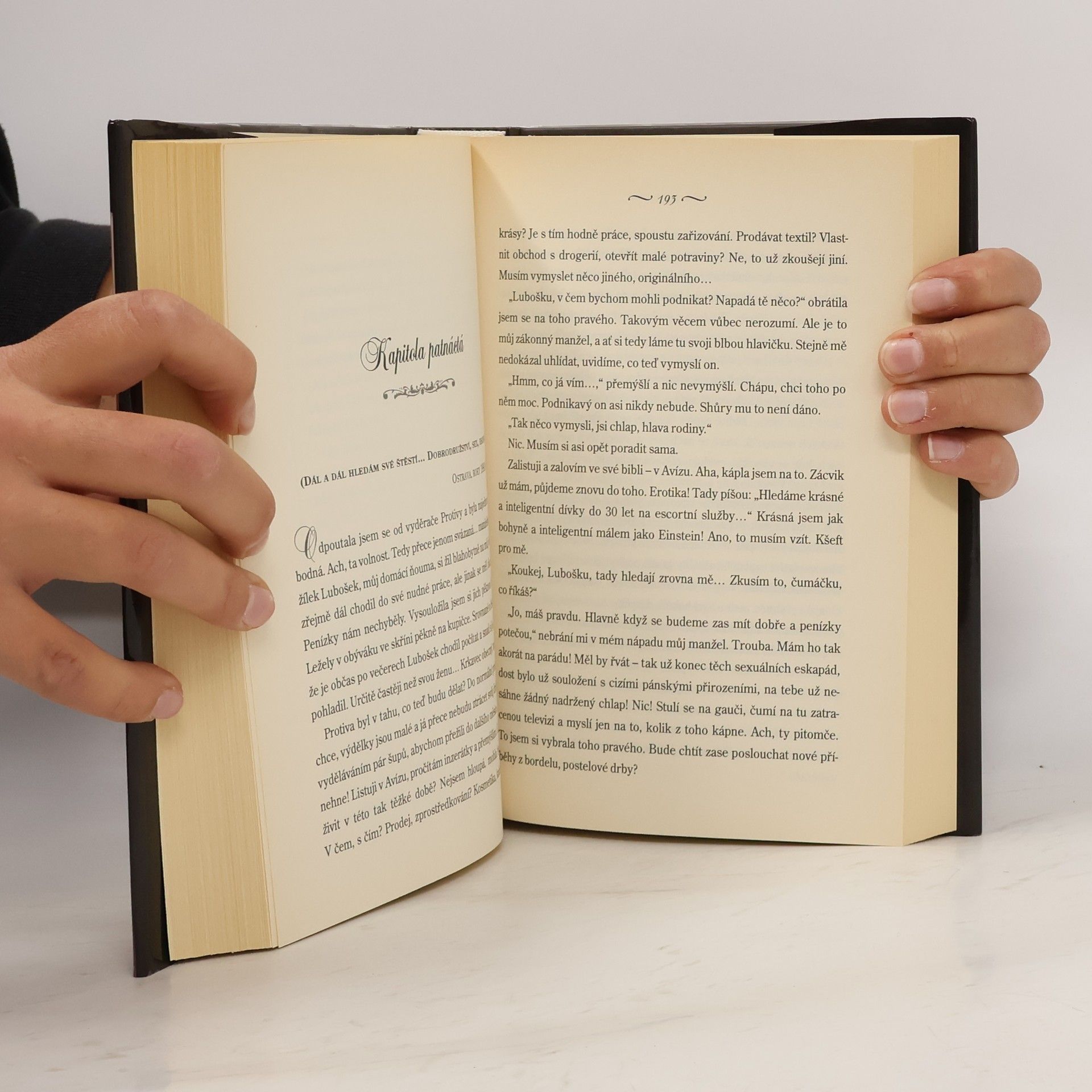 Životní příběh prostitutky, která přes všechny rány osudu zůstala silnou, vyrovnanou a hrdou ženou. Její nelehký osud, vyprávěný s nadhledem a ironií, sleduje čtenář ve dvou rovinách – pasáže o dětství, dospívání a začátcích její netradiční kariéry se prolínají s deníkovými zápisky ze současnosti, kde otevřeně, přesto decentně popisuje svůj běžný den nejen jako prostitutka a majitelka privátu, ale také jako přítelkyně, matka a žena.