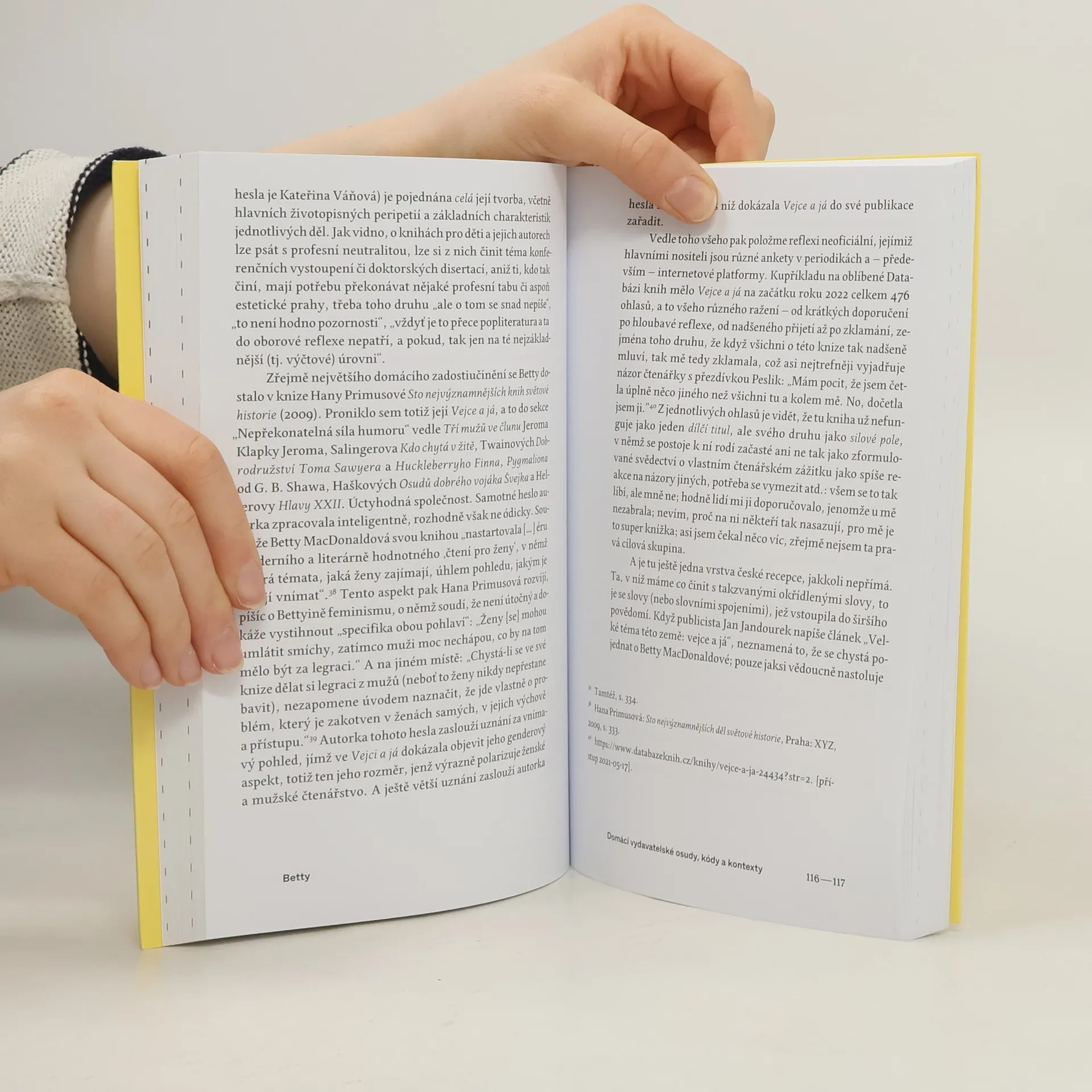 Kdybyste měla dát svému dítěti na cestu životem jednu knihu, která by to byla? Vejce a já. Takto odpověděla Marta Kubišová na dotaz Tomáše Halíka v roce 2015. Proč zrovna Betty MacDonaldová, autorka Vejce a já, dosáhla u českých čtenářů (rozuměj: čtenářek) takové popularity? Co ji způsobilo? A proč se tak děje zrovna u nás a ne jinde? Autor nejdříve sleduje americké osudy života a díla Betty MacDonaldové v širších kulturně-společenských souvislostech; poté hledá české paralely, kódy a předpoklady; v další části dostávají slovo samotné české čtenářky a jejich názory; kniha končí shrnujícím pohledem na daný fenomén v širokém kontextu (čtenářské) kultury. Ba ne, není to jen osobitý humor, jímž se tato americká autorka vepsala do našich srdcí; do značné míry je to i její protofeminismus. Její kulturní mise v českém prostředí je jak čtenářská, tak emancipační.