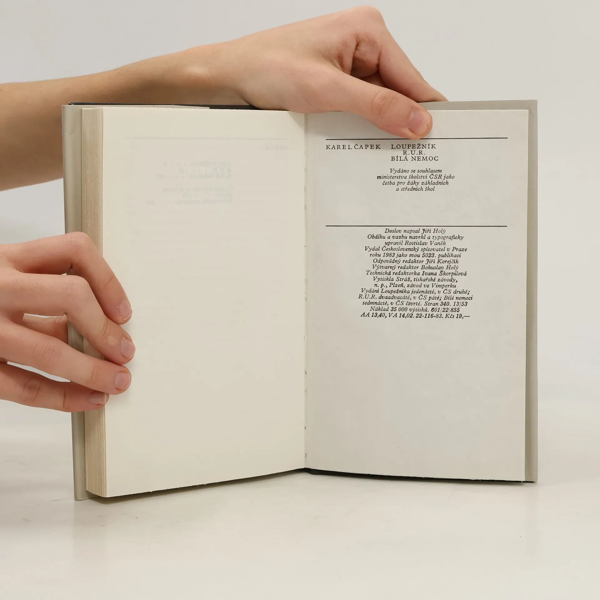 Souhrné vydání tří divadelních her. Vydáno se souhlasem Ministerstva školství ČSR jako četba pro žáky základních a středních škol. Loupežník - 11. vydání (v ČS druhé). R.U.R. - 22. vydání (v ČS páté). Bílá nemoc - 17. vydání (v ČS čtvrté).