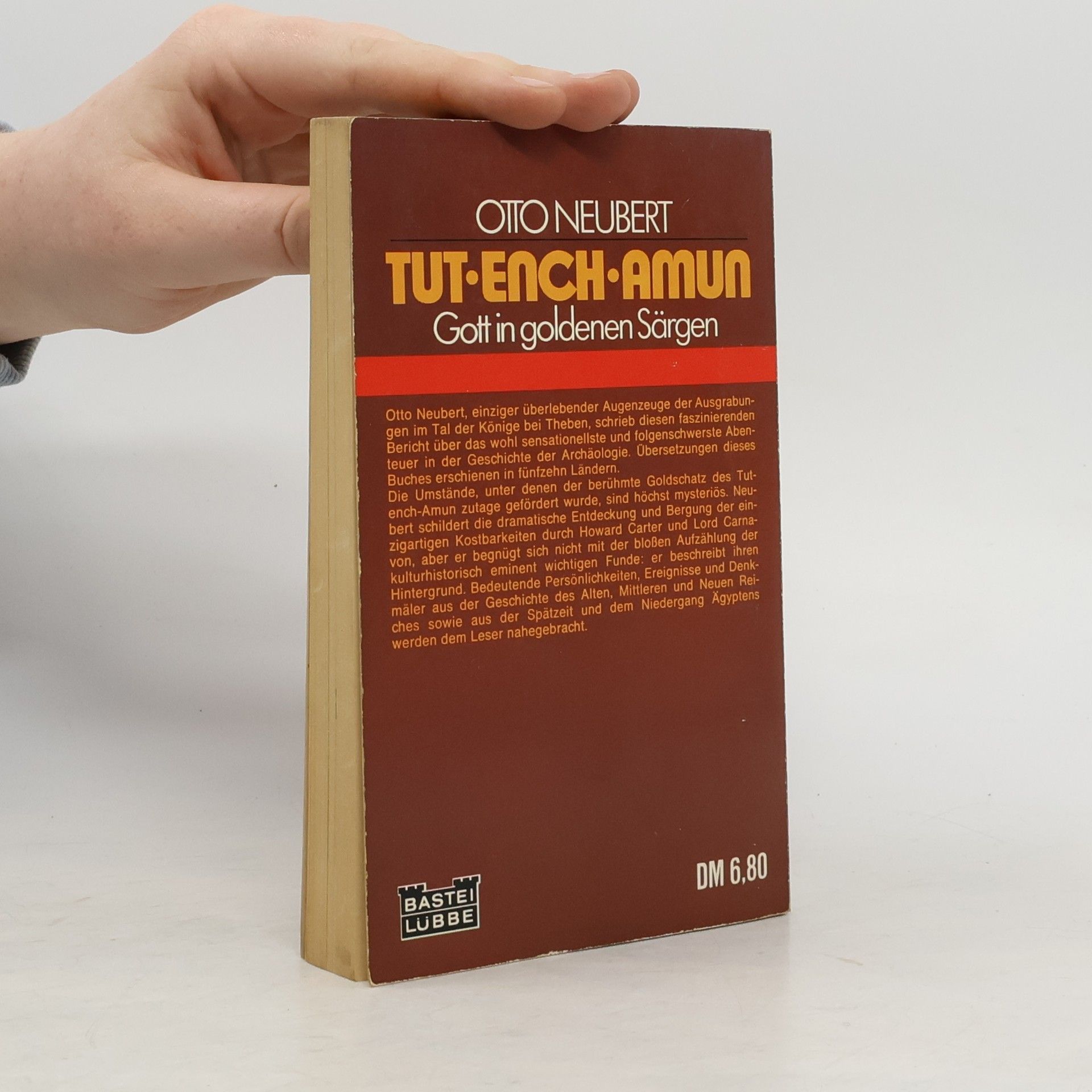 Kurzinfo auf der Rückseite: Otto Neubert, einziger überlebender Augenzeuge der Ausgrabungen im Tal der Könige bei Theben, schrieb diesen faszinierenden Bericht über das wohl sensationellste und folgenschwerste Abenteuer in der Geschichte der Archäologie. Übersetzungen dieses Buches erschienen in fünfzehn Ländern.