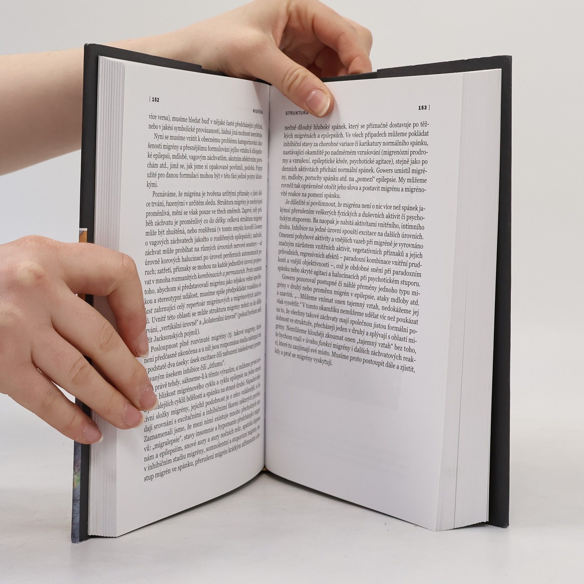 Ve své knize světoznámý neurolog Oliver Sacks netradičně pojednává o migréně, onemocnění, jež postihuje až pětinu žen a šest procent mužů. Detailním přiblížením této nemoci všem lidem s „bolestmi hlavy“ ukazuje, že trpí nejspíše neurologickým, po všech stránkách složitým onemocněním, které v jejich životě sehrává jedinečnou roli a je jakýmsi jejich určitým a osobitým „výrazem“.