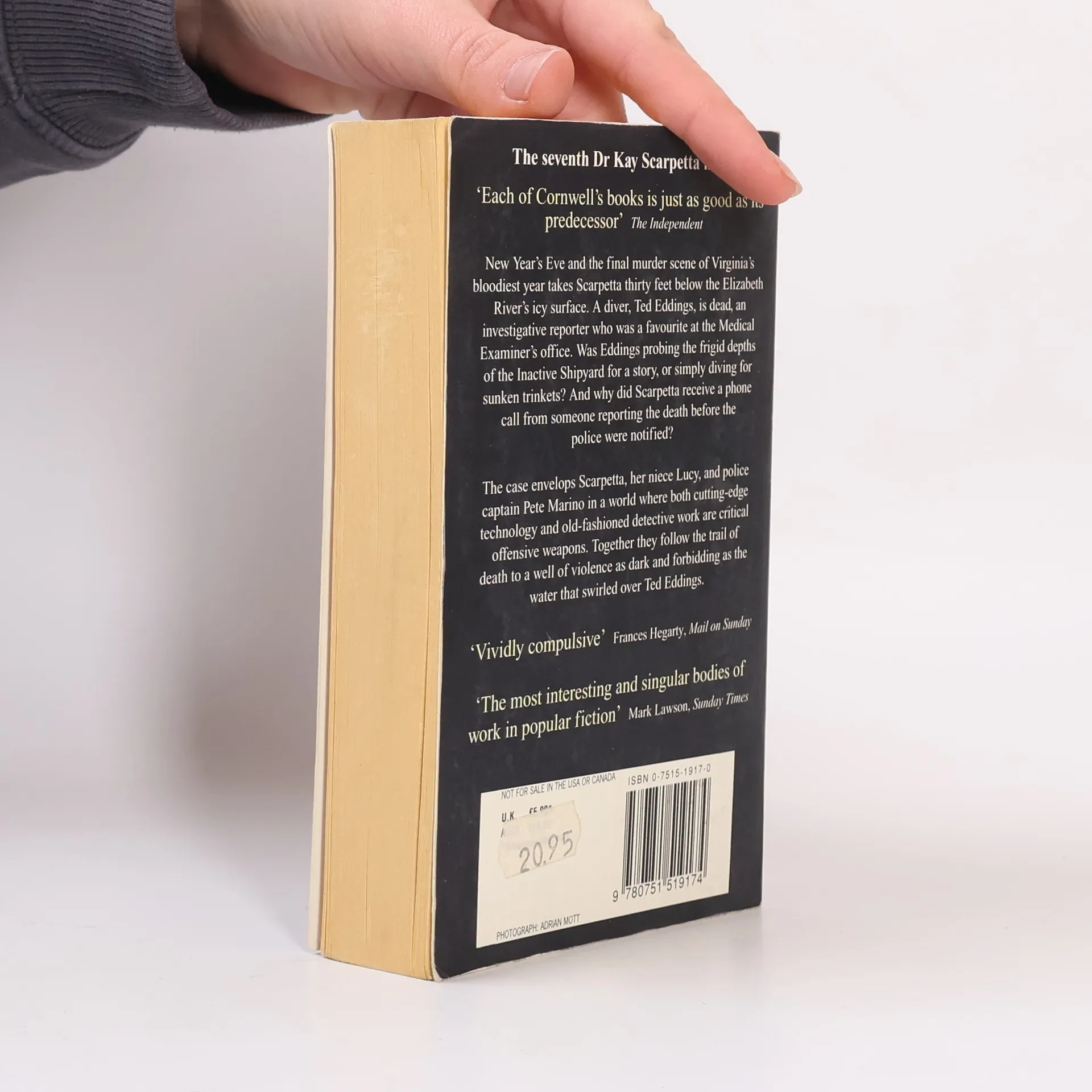 An investigative reporter is found dead in Virginia's icy waters ... New Year's Eve and the final murder scene of Virginia's bloodiest year takes Scarpetta thirty feet below the Elizabeth River's icy surface. A diver, Ted Eddings, is dead, an investigative reporter who was a favourite at the Medical Examiner's office. Was Eddings probing the frigid depths of the Inactive Shipyard for a story, or simply diving for sunken trinkets? And why did Scarpetta receive a phone call from someone reporting the death before the police were notified? The case envelops Scarpetta, her niece Lucy, and police captain Pete Marino in a world where both cutting-edge technology and old-fashioned detective work are critical offensive weapons. Together they follow the trail of death to a well of violence as dark and forbidding as water that swirled over Ted Eddings. For more about Patricia Cornwell and her books visit her website on www.patricia-cornwell.com