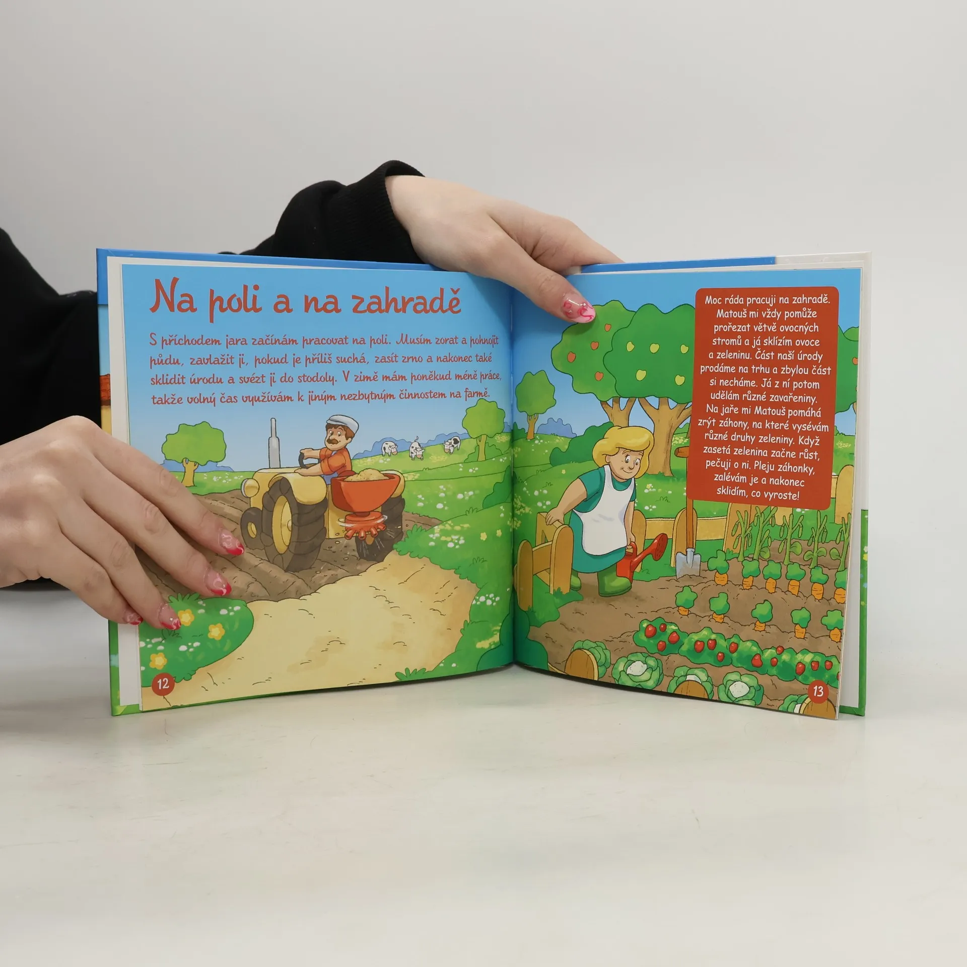 Kniha dětem přiblíží život v hospodářství, na dvorku, polích a lukách, na farmě a všude kde můžeme najít zvířata.