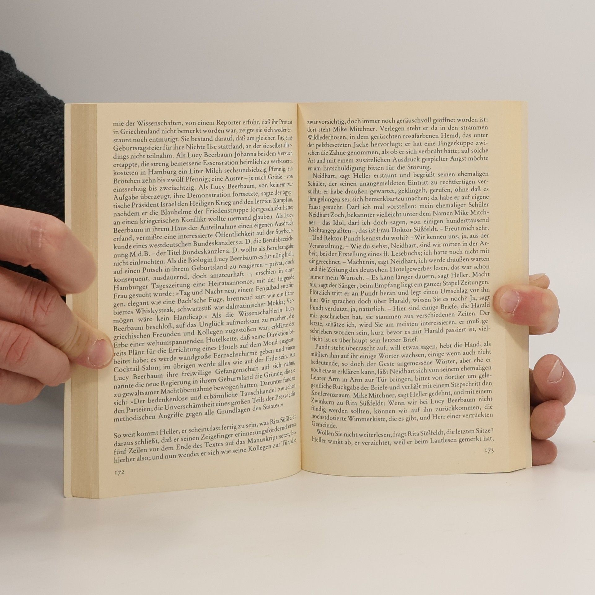 Drei Pädagogen - ein pensionierter Rektor, eine intellektuelle Lektorin und ein fortschrittlicher Studienrat - treffen sich in Hamburg, um im Auftrag eines Arbeitskreises der Kultusministerkonferenz für die Bundesrepublik ein neues repräsentatives Lesebuch zusammenzustellen. Uber die beiden ersten Teile können sie sich mühelos einigen. Das dritte Kapitel, Lebensbilder-Vorbilder, bringt jedoch unerwartete und kaum zu bewältigende Schwierigkeiten mit sich. Auf unsicherem Boden treten die drei Kollegen vor und zurück, richtend, wertend und urteilend. Zu dem Dilemma ihrer anfechtbaren Vorbilder kommen ihre eigenen Probleme. Schon sieht es so aus, als könnte man bei der Suche nach dem Vorbild zu keiner Einigung gelangen, da wird ein Name in die Debatte geworfen: Lucy Beerbaum, eine berühmte Biologin - allerdings nicht unumstritten, denn sie setzte ihrem Leben ein vorzeitiges Ende. Die kaum lösbare Aufgabe scheint gelöst - da verweigert der Verleger die Annahme. Was sollen junge Leute mit einem Vorbild, das ausschließlich leidet, mitleidet? Ein Fiasko also am Ende: alle geben auf. Der Leser darf weiterdenken über ein Buch, das viel Exemplarisches unserer Zeit vereint.