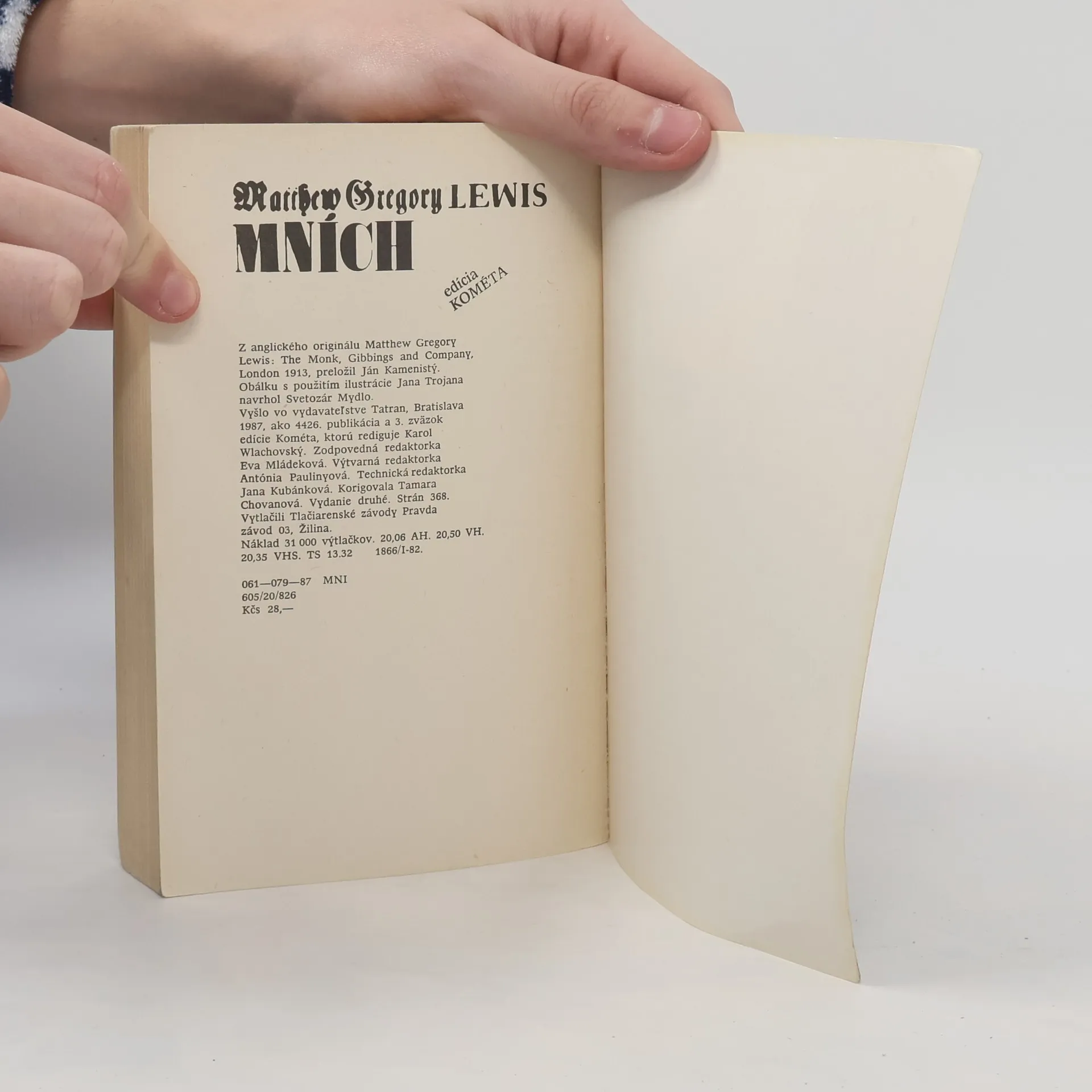 Lewis opisuje ľúbostné vášne mnícha Ambrosia nepokryte. Dej sa odohráva v Madride, v jednom z najmocnejších centier cirkevnej moci. Čitateľa zaujme nielen bohatstvom myšlienok, farbistým opisom prostredia a množstvom postáv, ale - priznajme si to - i svojou hrôzostrašnosťou.