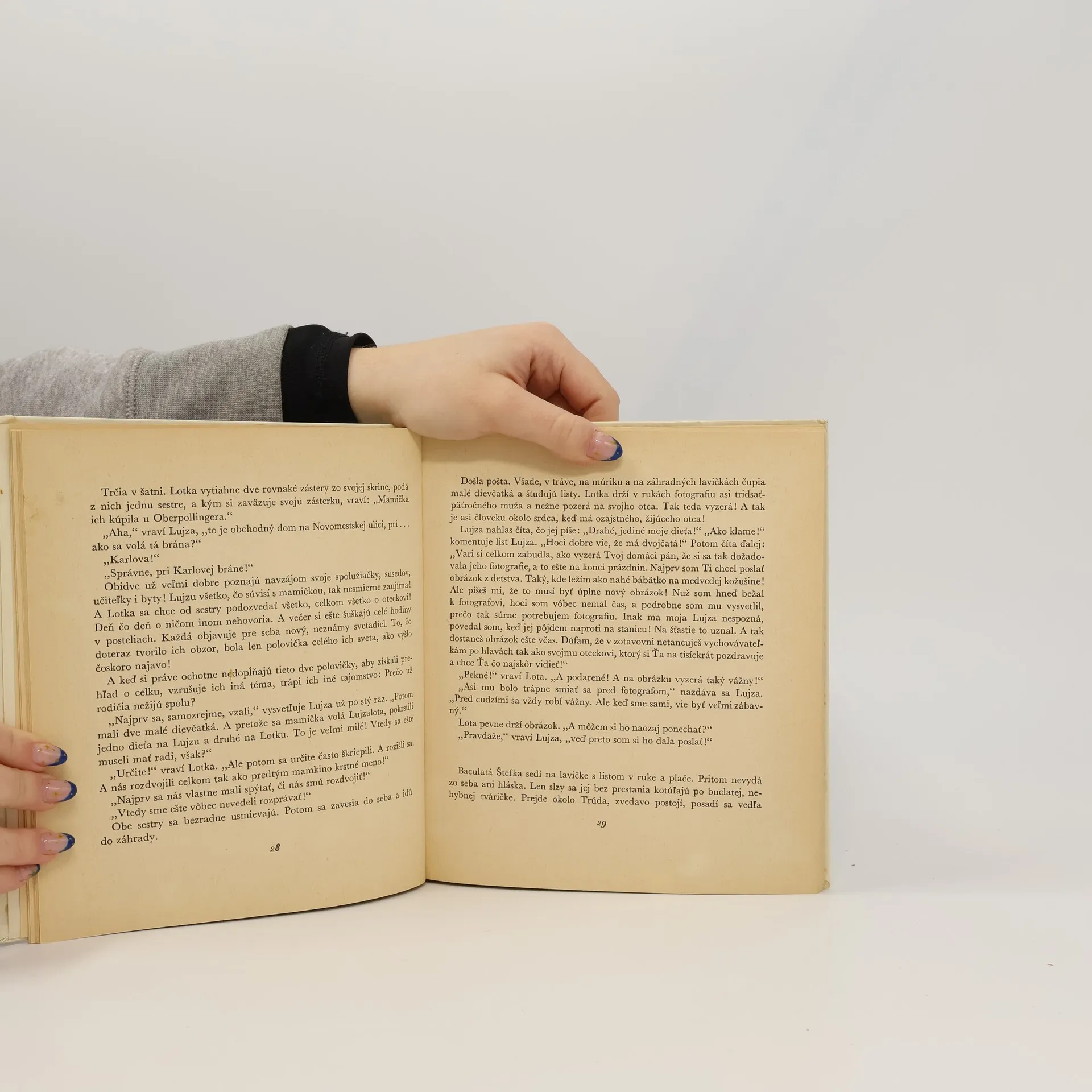 Je to zvláštne, keď vysvitne, že z jedného dievčatka sú z čista jasna dve. A práve také čosi sa prihodí v letnom tábore. Lujza sa tam zoznámi s Lotkou, ktorá sa na ňu ponáša viac, ako vlastný obraz v zrkadle. Krátke pátranie však rozlúskne tento oriešok: dievčatá sú dvojičky. Ich mama sotcom sa dávno rozviedli a každý si vzal do opatery jednu z nich. Dievčence vyhútajú plán, že po prázdninách sa vymenia. Rátajú s tým, že ich ani vlastní rodičia nerozoznajú. Alebo azda áno? Podarí sa im obnoviť pretrhnuté rodinné putá? Dokážu deti napraviť chyby svojich rodičov? Na vtipnom príbehu, ktorý rozpráva veselo o vážnych témach, sa už pobavilo niekoľko generácií čitateľov.