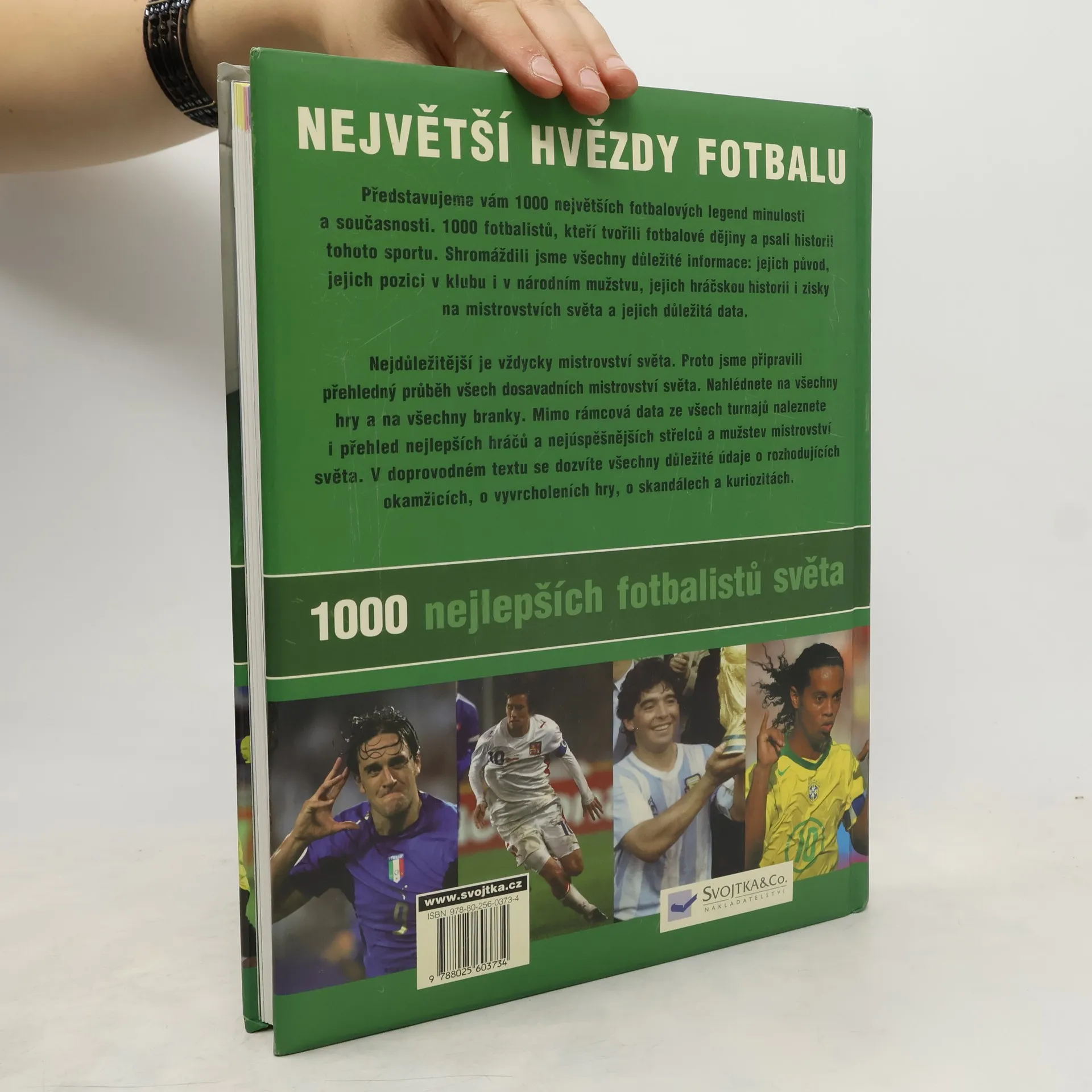 Představujeme vám 1000 největších fotbalových legend minulosti a současnosti. 1000 fotbalistů, kteří tvořili fotbalové dějiny a psali historii tohoto sportu. Shromáždili jsme všechny důležité informace: původ hráčů, jejich pozici v klubu i v národním mužstvu, jejich hráčskou historii i zisky na mistrovstvích světa a další důležitá data. Nejdůležitější je vždy mistrovství světa. Proto jsme připravili přehledný průběh všech dosavadních světových šampionátů. Nahlédnete na všechny hry a na všechny branky. Mimo rámcová data ze všech turnajů zde naleznete i přehled nejlepších hráčů a nejúspěšnějších střelců i mužstev mistrovství světa. V doprovodném textu se pak dozvíte i všechny důležité údaje o rozhodujících okamžicích, o vyvrcholeních hry, o skandálech a kuriozitách.