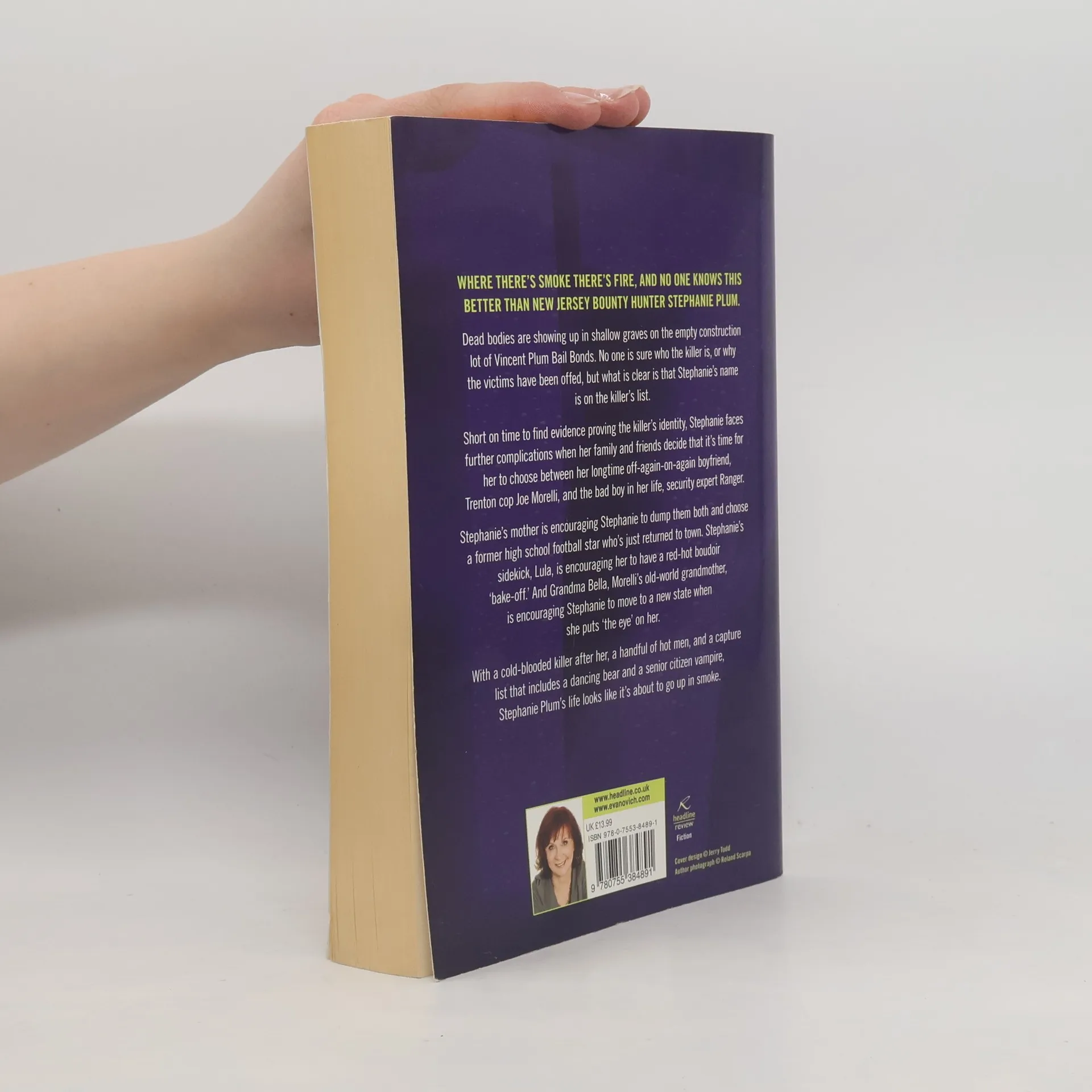 Where there's smoke there's fire, and no one knows this better than New Jersey bounty hunter, Stephanie Plum. The bail bonds office has burned to the ground, and bodies are turning up in the empty construction lot. To make matters worse, Stephanie is working out of a motor home she shares with a dancing bear, and Joe Morelli's old world grandmother has declared a vendetta against her. And just when Stephanie decides it might be time to choose between the two men in her life, Morelli and Ranger, a third man from Stephanie's past moves back to Trenton...