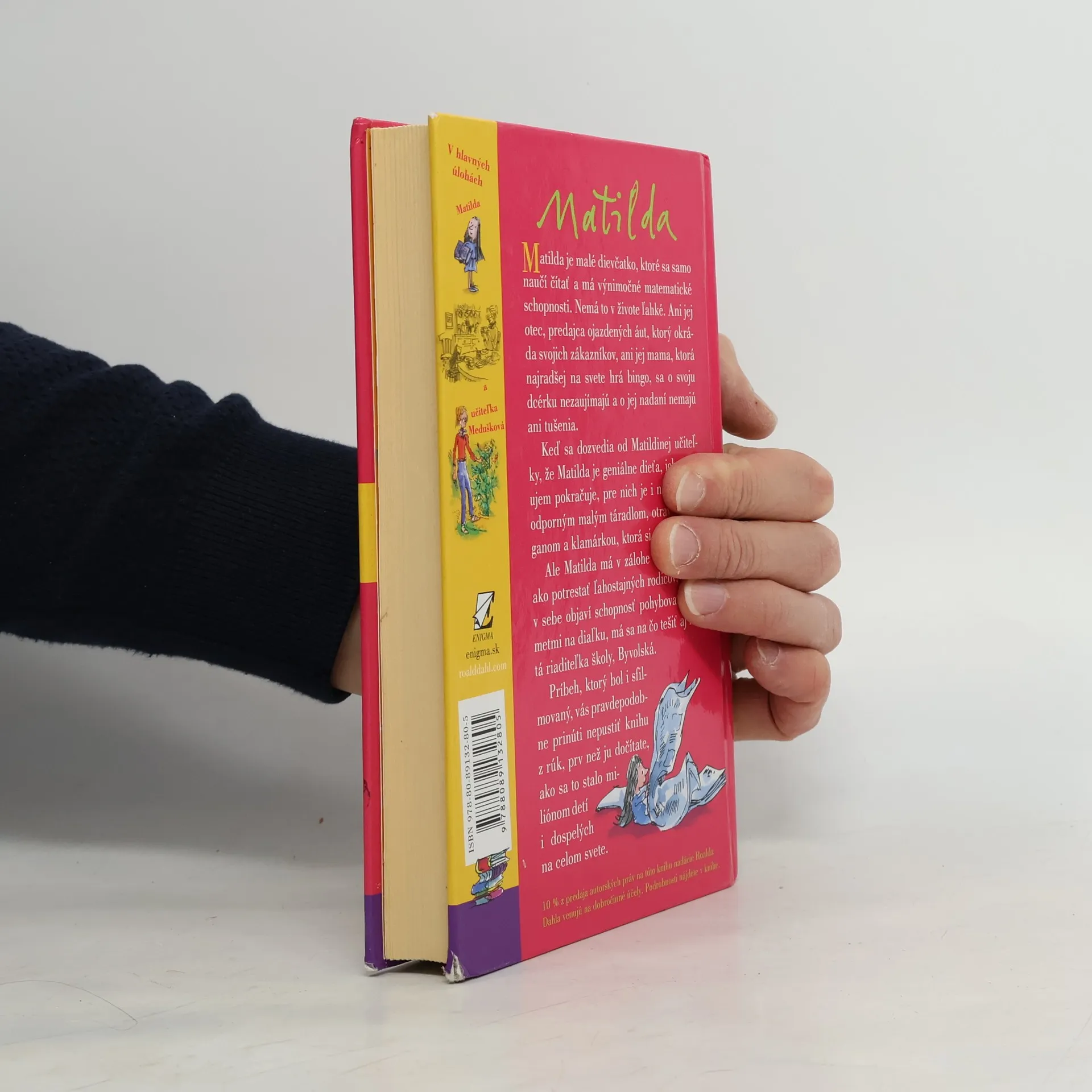 Príbeh malého, výnimočne nadaného dievčatka, ktoré v sebe objaví schopnosť pohybovať predmetmi na diaľku Vás pravdepodobne prinúti - ako sa to stalo miliónom detí, ale i dospelých na celom svete - nepustiť knihu z rúk prv než ju dočítate. Vďaka deju plnému napätia, originálnych nápadov a svojrázneho, niekedy až čierneho humoru sa kniha stala ihneď po prvom vydaní v roku 1988 bestsellerom. K úspechu knihy prispievajú aj nenapodobiteľné ilustrácie jedného z najrenomovanejších britských ilustrátorov, Quentina Blaka, dlhoročného spolupracovníka R. Dahla. S potešením predkladáme túto knihu slovenským deťom, ale aj všetkým dospelým, ktorí si chcú v zhone všedného dňa pripomenúť zázračno detskej duše.