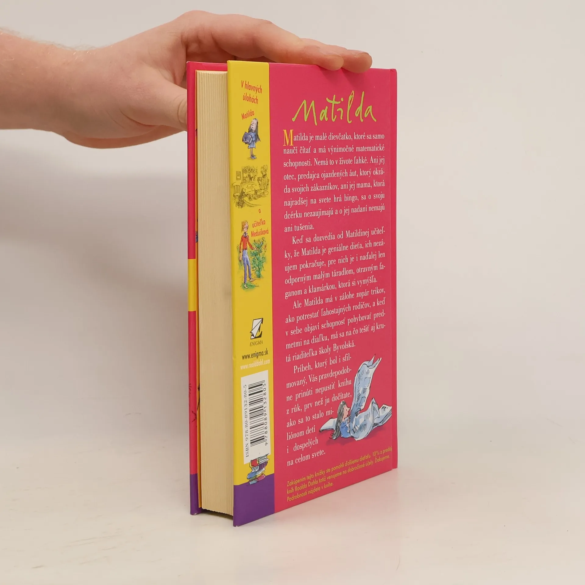 Príbeh malého, výnimočne nadaného dievčatka, ktoré v sebe objaví schopnosť pohybovať predmetmi na diaľku Vás pravdepodobne prinúti - ako sa to stalo miliónom detí, ale i dospelých na celom svete - nepustiť knihu z rúk prv než ju dočítate. Vďaka deju plnému napätia, originálnych nápadov a svojrázneho, niekedy až čierneho humoru sa kniha stala ihneď po prvom vydaní v roku 1988 bestsellerom. K úspechu knihy prispievajú aj nenapodobiteľné ilustrácie jedného z najrenomovanejších britských ilustrátorov, Quentina Blaka, dlhoročného spolupracovníka R. Dahla. S potešením predkladáme túto knihu slovenským deťom, ale aj všetkým dospelým, ktorí si chcú v zhone všedného dňa pripomenúť zázračno detskej duše.