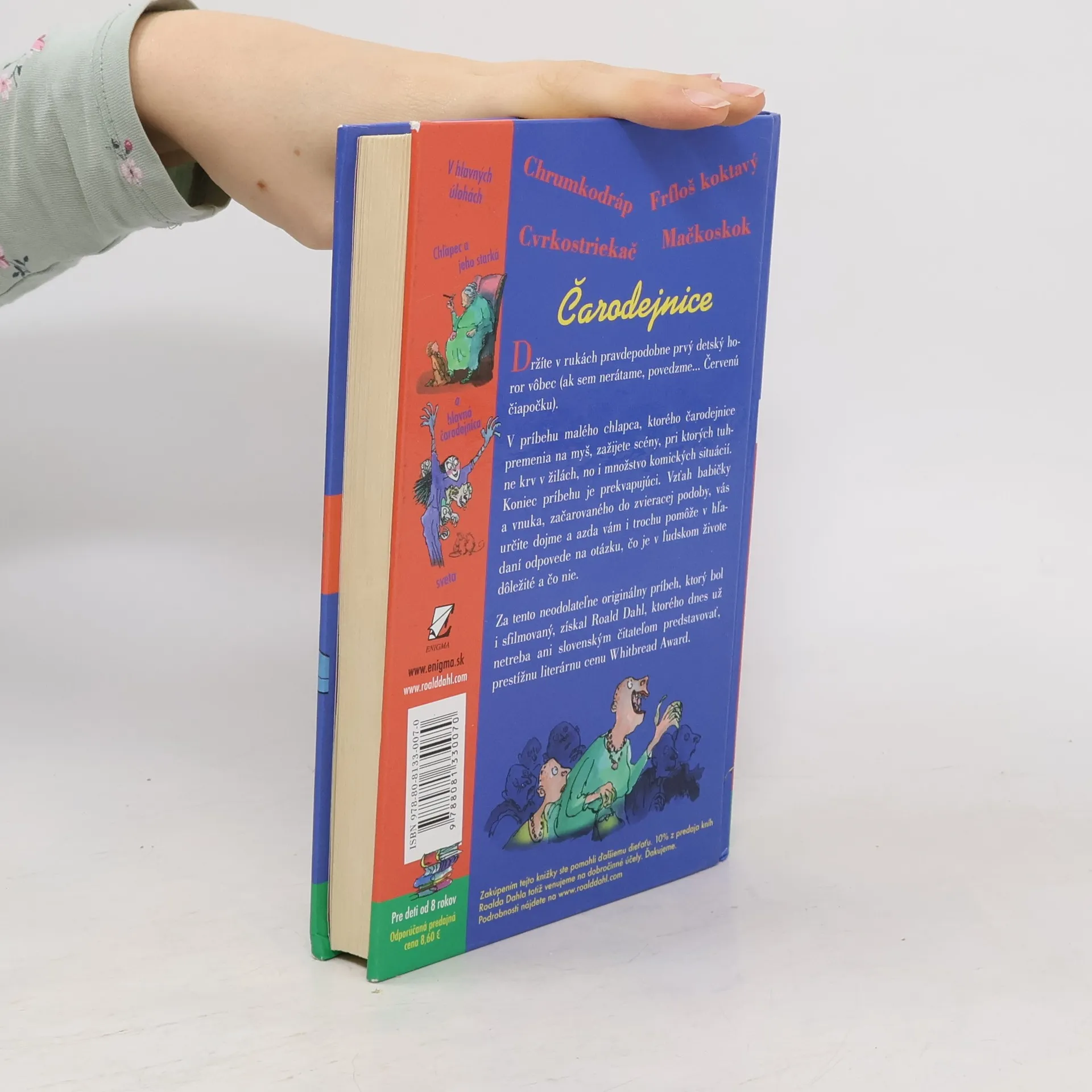 Toto je pravdepodobne prvý "detský horor" vôbec (ak sem nerátame, povedzme... Červenú čiapočku). V príbehu malého chlapca, ktorého čarodejnice premenia na myš, zažijete scény, pri ktorých tuhne krv v žilách, no i množstvo komických situácií. Koniec príbehu je prekvapujúci. Vzťah babičky a vnuka, začarovaného do zvieracej podoby, vás určite dojme a azda vám i trochu pomôže v hľadaní odpovede na otázku, čo je v ľudskom živote dôležité a čo nie. Za tento neodolateľne originálny príbeh, ktorý bol i sfilmovaný, získal Roald Dahl, ktorého dnes už netreba ani slovenským čitateľom predstavovať, prestížnu literárnu cenu Whitbread Award.