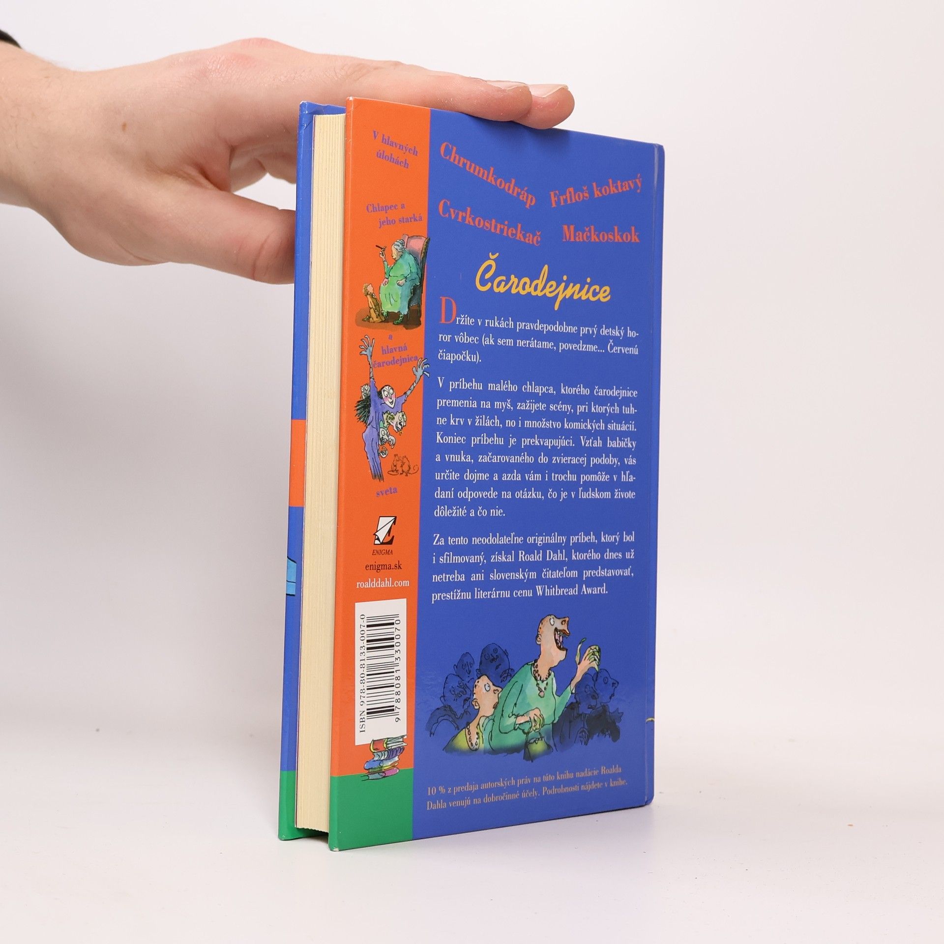 Toto je pravdepodobne prvý "detský horor" vôbec (ak sem nerátame, povedzme... Červenú čiapočku). V príbehu malého chlapca, ktorého čarodejnice premenia na myš, zažijete scény, pri ktorých tuhne krv v žilách, no i množstvo komických situácií. Koniec príbehu je prekvapujúci. Vzťah babičky a vnuka, začarovaného do zvieracej podoby, vás určite dojme a azda vám i trochu pomôže v hľadaní odpovede na otázku, čo je v ľudskom živote dôležité a čo nie. Za tento neodolateľne originálny príbeh, ktorý bol i sfilmovaný, získal Roald Dahl, ktorého dnes už netreba ani slovenským čitateľom predstavovať, prestížnu literárnu cenu Whitbread Award.