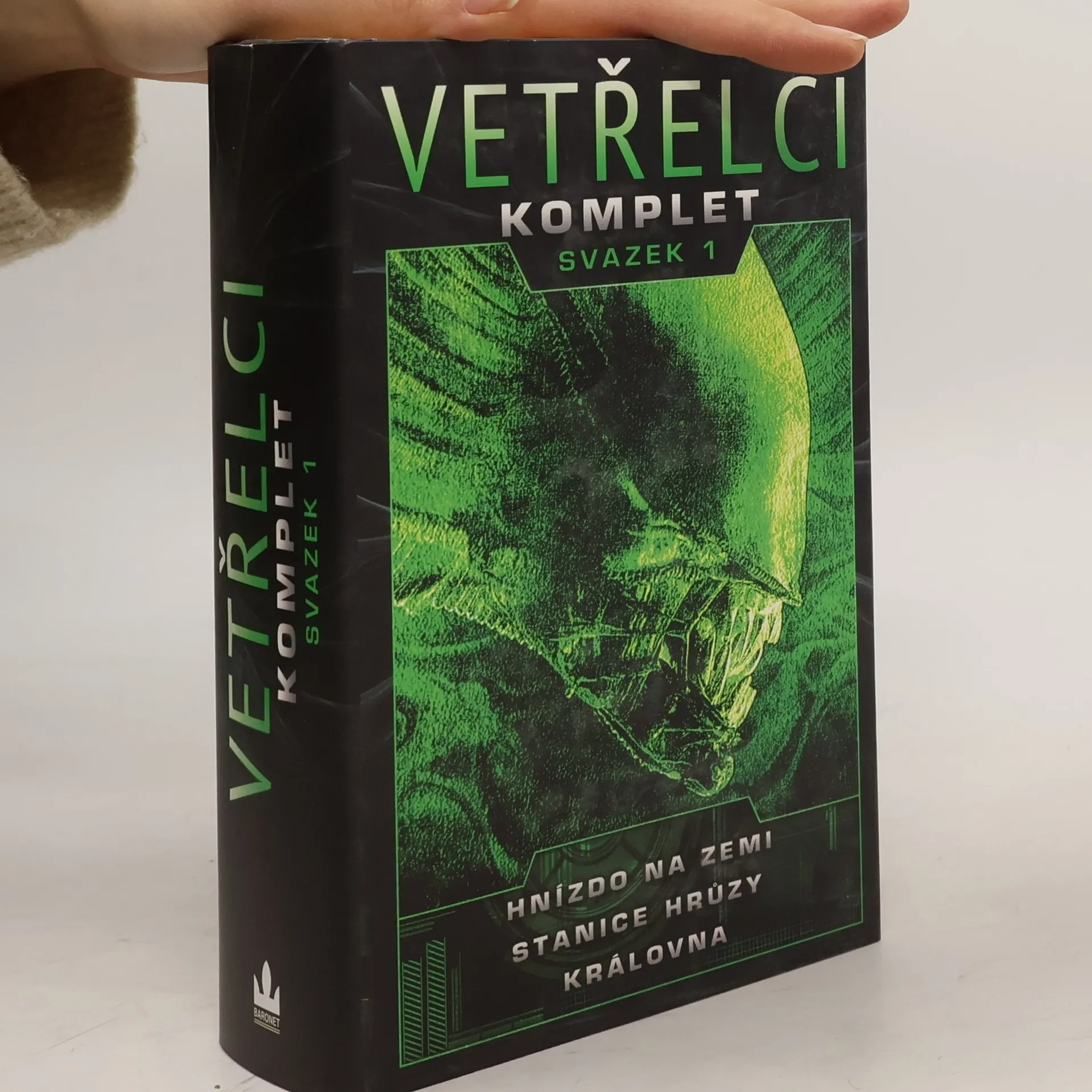 Přicházejí tiše, jako se za noci plížívá smrt. Jsou to dokonalí zabijáci. Jsou to vetřelci. A někteří lidé by za ně zaplatili víc než za cokoli jiného. Jenže pokus udělat z tak mocného stvoření zbraň je pro obyvatele Země velmi nebezpečná hra... První svazek The Complete Aliens Omnibus obsahuje Earth Hive Stevea Perryho, jeho Nightmare Asylum a The Female War, kterou napsal se svou dcerou Stephani Perry. Tento svazek obsahuje díla vydaná samostatně: Hnízdo na Zemi, Královna, Stanice hrůzy