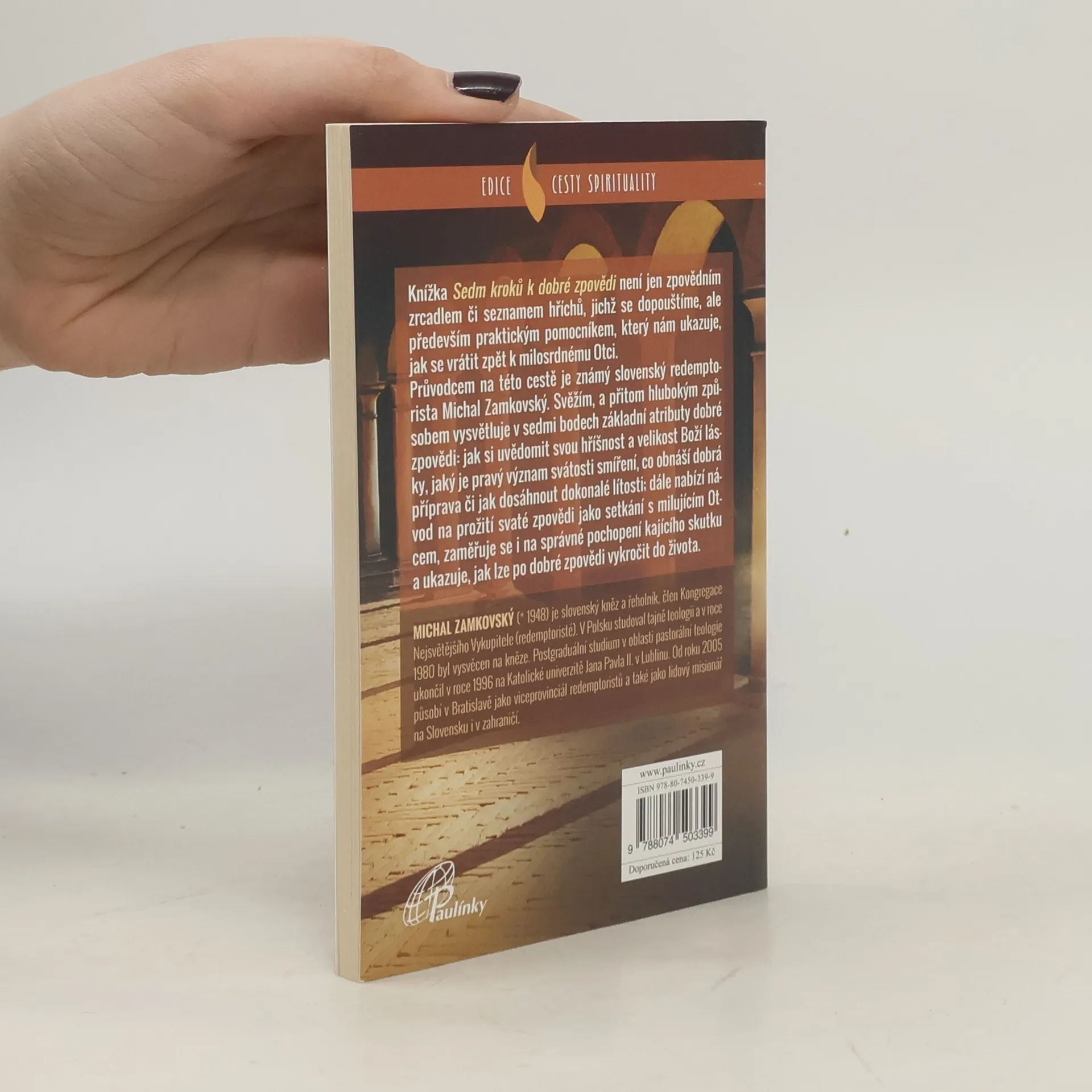 Knížka Sedm kroků k dobré zpovědi není jen zpovědním zrcadlem či seznamem hříchů, kterých se dopouštíme, ale především praktickým pomocníkem, jakousi „duchovní mapou“, která nám ukazuje, jak se vrátit zpět k milosrdnému Otci. Průvodcem na této cestě je známý slovenský redemptorista Michal Zamkovský. Svěžím, a přitom hlubokým způsobem vysvětluje v sedmi bodech základní atributy dobré zpovědi: jak si uvědomit svou hříšnost a velikost Boží lásky, jaký je pravý význam zpovědi, co obnáší dobrá příprava nebo jak dosáhnout dokonalé lítosti. Dále nabízí návod na prožití zpovědi jako setkání s milujícím Otcem, popisuje, o čem má být kající skutek a jak vykročit do života po dobré zpovědi.