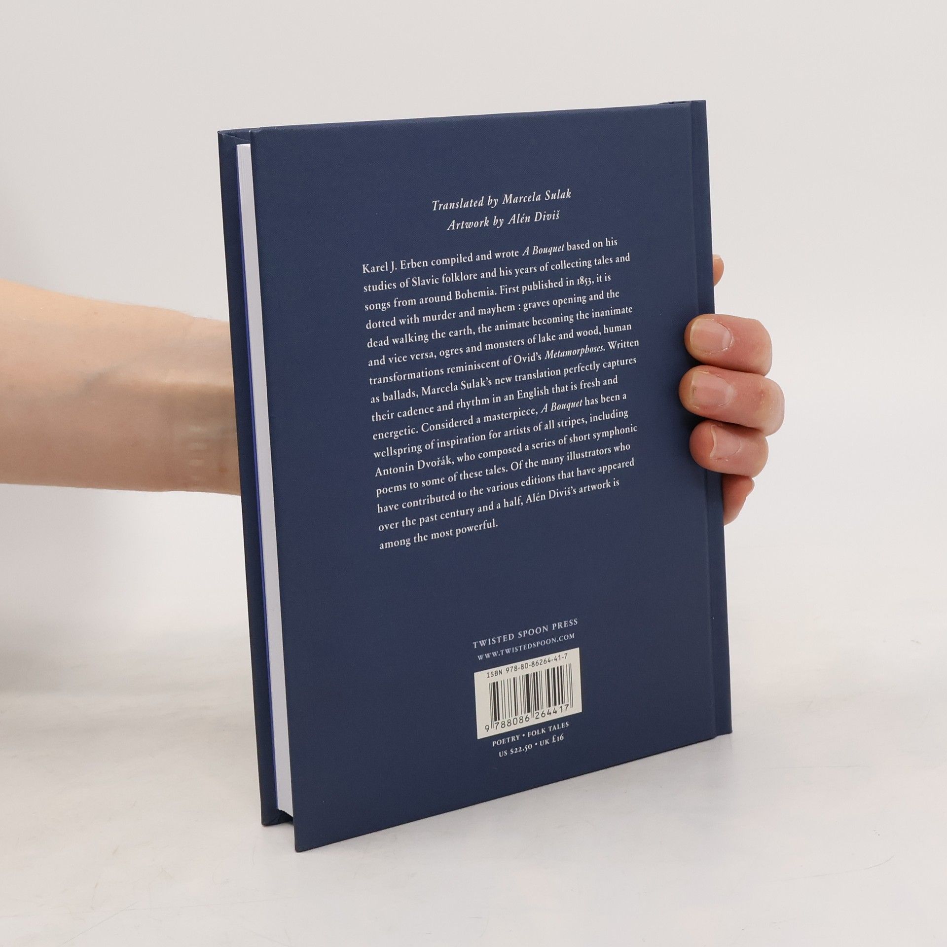 Tato kniha byla vydána českým nakladatelstvím Twisted Spoon Press, které sídlí v Praze a vydává díla českých a slovanských autorů v anglickém jazyce. Oficiální anotace nakladatelství: Erben compiled and wrote A Bouquet based on his studies of Slavic folklore. First published in 1853, it is dotted with murder and mayhem : graves opening and the dead walking the earth, the animate becoming the inanimate and vice versa, ogres and monsters of lake and wood, human transformations reminiscent of Ovid's Metamorphoses. Written as ballads, Marcela Sulak's new translation perfectly captures their cadence and rhythm in an English that is fresh and energetic. Through the years A Bouquet has come to be regarded as a masterpiece and wellspring of inspiration to artists of all stripes, including Antonín Dvořák, who composed a series of symphonic poems to some of these tales. Of the many illustrators who have contributed to the various editions that have appeared over the past century and a half, Alén Diviš's artwork is generally considered the most powerful. This edition also includes Erben's own notes explaining the origins of many of these tales. Translated from Czech and introduced by Marcela Malek Sulak. Artwork by Alén Diviš.