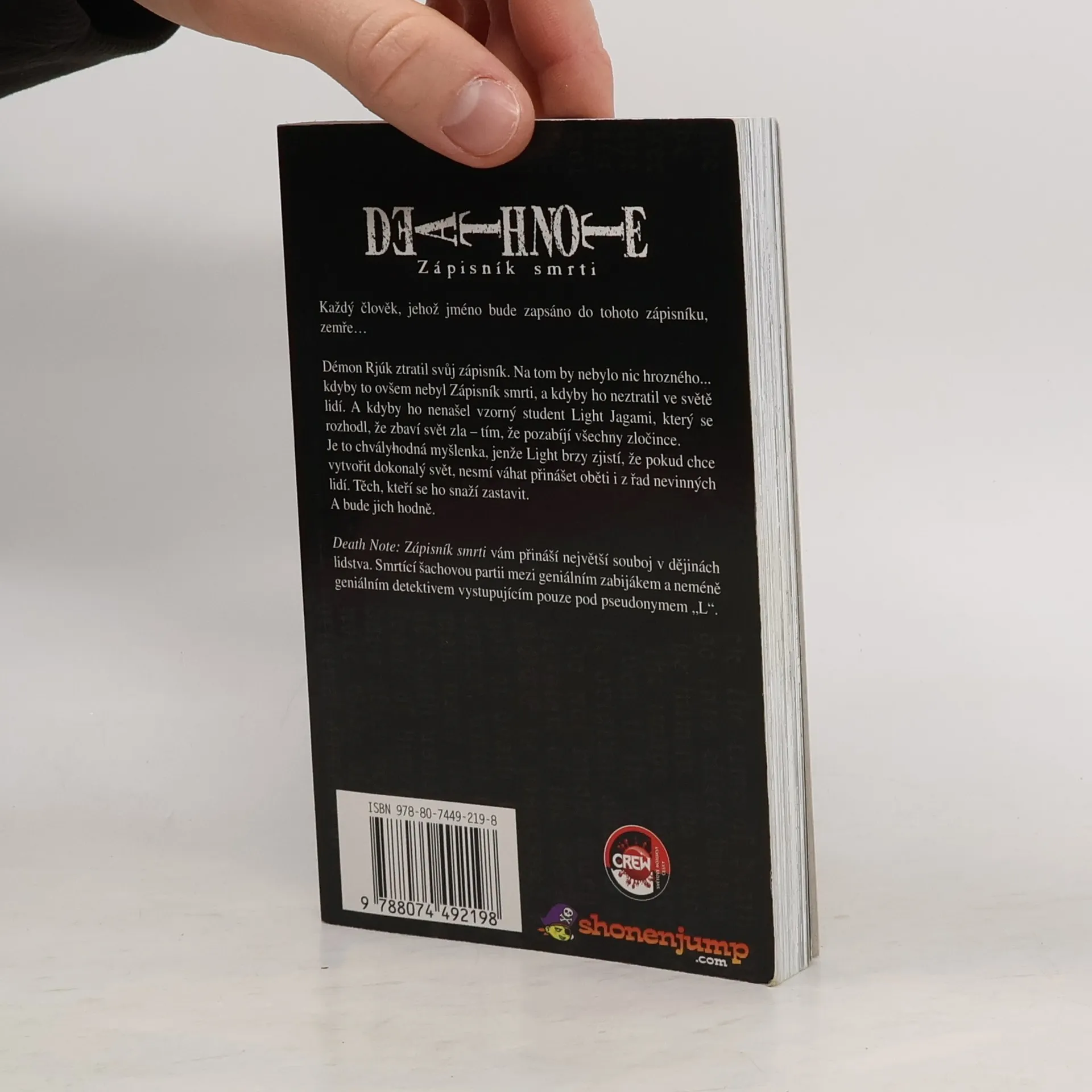 Démon Rjúk ztratil svůj zápisník. Na tom by nebylo nic hrozného... kdyby to ovšem nebyl Zápisník smrti, a kdyby ho neztratil ve světě lidí. A kdyby ho nenašel vzorný studen Light Jagami, který se rozhodl, že zbaví svět zla - tím, že pozabíjí všechny zločince. Je to chvályhodná myšlenka, jenže Light brzy jistí, že pokud chce vytvořit dokonalý svět, nesmí váhat přinášet oběti i z řad nevinných lidí. Těch, kteří se ho snaží zastavit. A bude jich hodně. Death Note: Zápisník smrti vám přináší největší souboj v dějinách lidstva. Smrtící šachovou partii mezi geniálním zabijákem a neméně geniálním detektivem vystupujícím pouze pod pseudonymem "L".