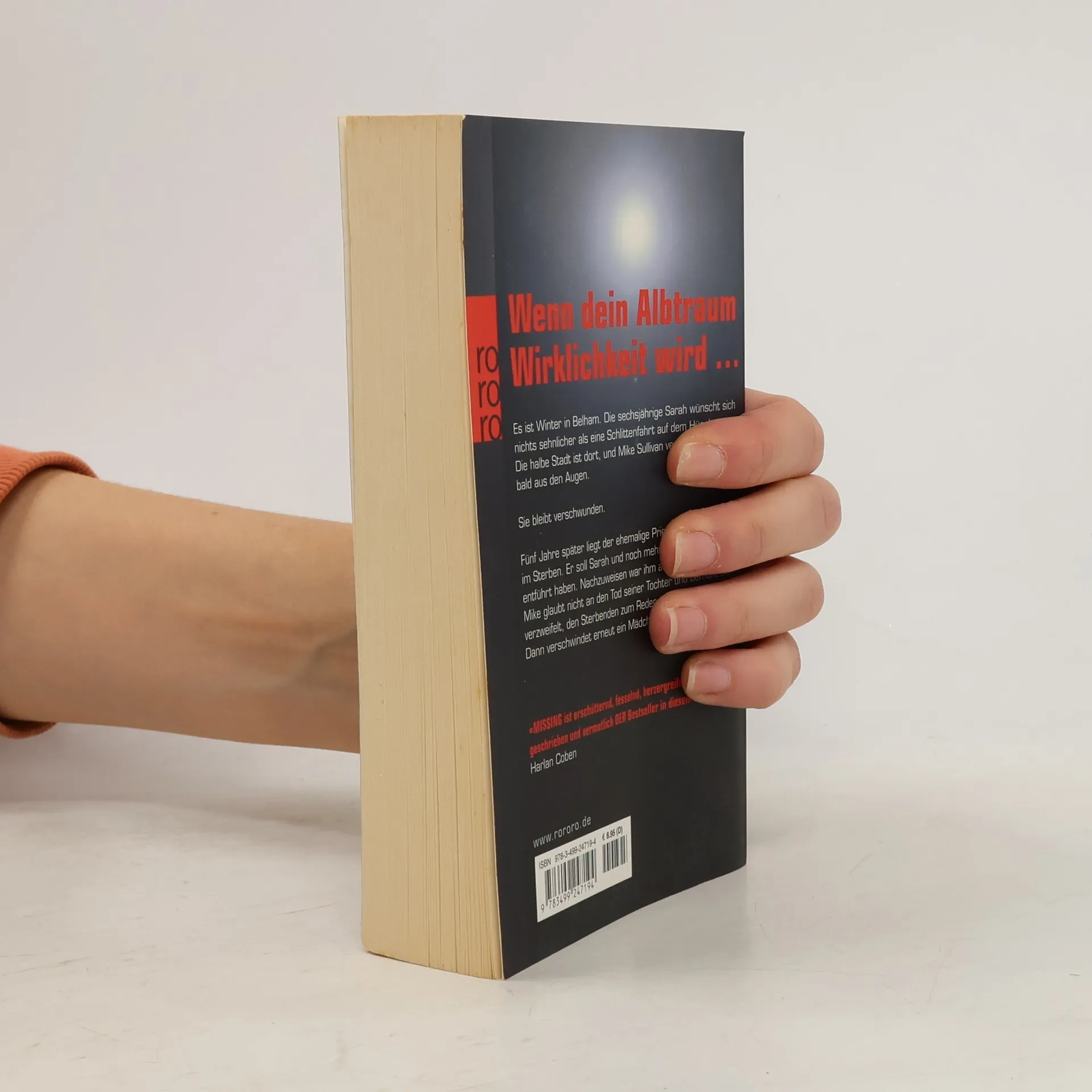 Wenn dein Albtraum Wirklichkeit wird … Es ist Winter in Belham. Die sechsjährige Sarah wünscht sich nichts sehnlicher als eine Schlittenfahrt auf dem Hügel. Die halbe Stadt ist dort und Mike Sullivan verliert seine Tochter bald aus den Augen. Sie bleibt verschwunden. Fünf Jahre später liegt der ehemalige Priester Francis Jonah im Sterben. Er soll Sarah und noch mehrere andere Mädchen entführt haben. Nachzuweisen war ihm aber nie etwas. Mike glaubt nicht an den Tod seiner Tochter. In einem verzweifelten Wettlauf mit der Zeit bemüht er sich, den Sterbenden zum Reden zu bringen. «MISSING ist erschütternd, fesselnd, herzergreifend, wunderbar geschrieben und vermutlich DER Bestseller in diesem Jahr.» (Harlan Coben)