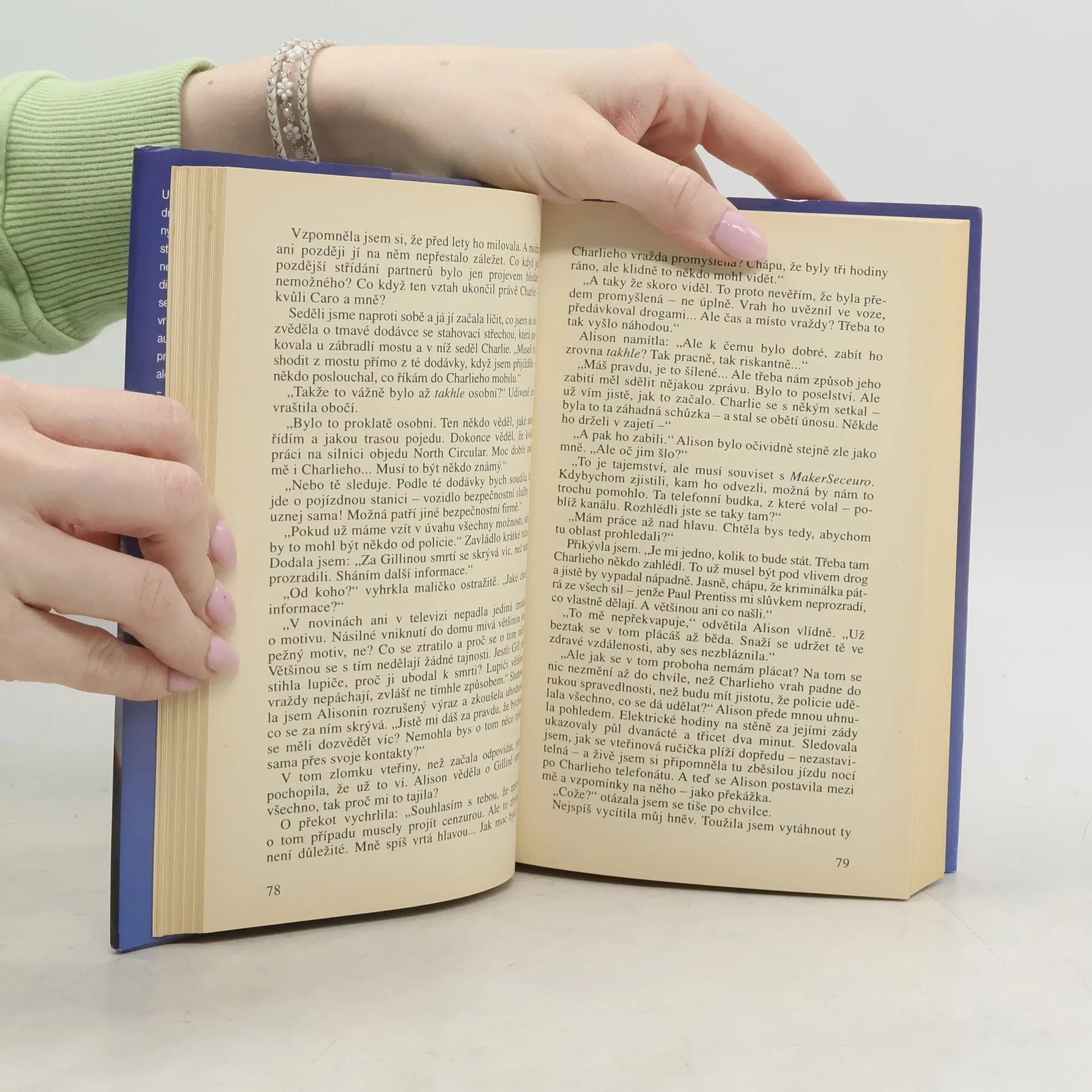 Uprostřed noci probudí Zoe telefon. na druhém konce se ozve téměř nesrozumitelný hlas jejího manžela, než však Charles stačí něco říct, je telefon hluchý. Zoe netuší, kde Charles je, ale okamžitě nasedne do auta a vydá se ho hledat. Když se blíží k Mostu sebevrahů, skočí na silnici před projíždějící auto nějaký muž a způsobí dopravní nehodu. Zoe v sebevrahovi pozná svého manžela-a auto, před něž se vrhl, je naprosto stejné jako její. Zoe ani na okamžik neuvěří, že by Charles spáchal sebevraždu a proto se snaží pátrat sama. Naráží na stále nové otázky a smyčka nebezpečí se kolem ní stahuje. Jde o osobní mstu nebo konkurenční boj (mezi bezpečnostními agenturami). Zoe se nemůže spolehnout na nikoho, ani na dceru Caro, která ji viní z otcovy smrti, ani na kolegy z práce, ani na dávnou přítelkyni Allison.