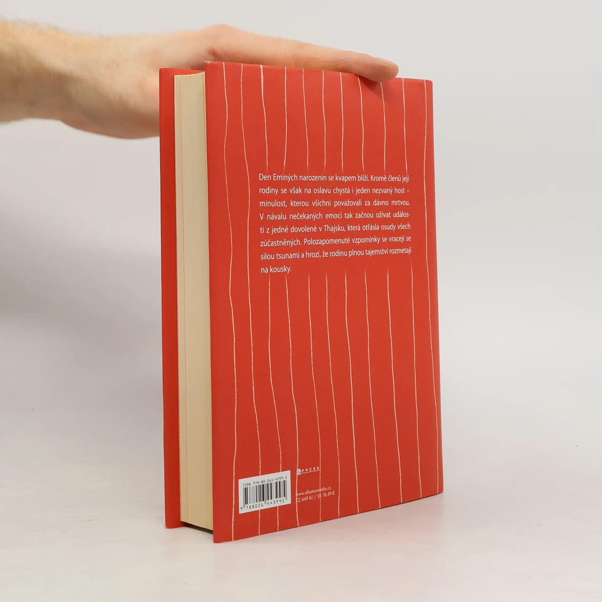 Den Eminých narozenin se kvapem blíží. Kromě členů její rodiny se však na oslavu chystá i jeden nezvaný host – minulost, kterou všichni považovali za dávno mrtvou. V návalu nečekaných emocí tak začnou ožívat události z jedné dovolené v Thajsku, která otřásla osudy všech zúčastněných. Polozapomenuté vzpomínky se vracejí se silou tsunami a hrozí, že rodinu plnou tajemství rozmetají na kousky. Kniha Tsunami získala Cenu čtenářů v rámci udílení knižích cen Český bestseller 2022.
