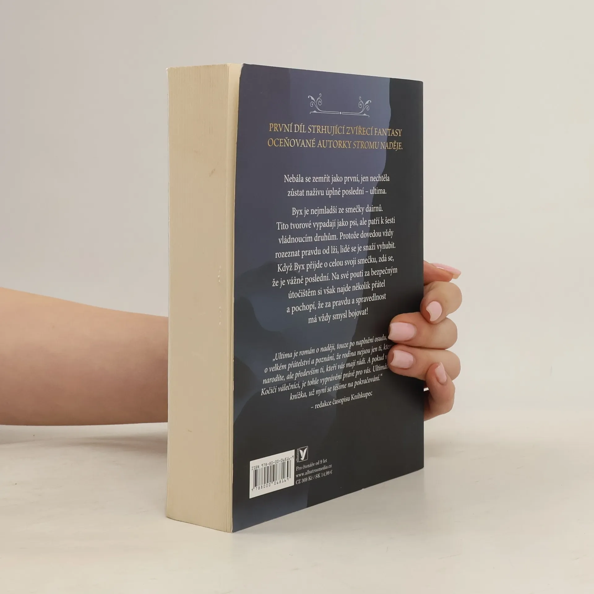 První díl zvířecí fantasy trilogie, která nadchne všechny milovníky Kočičích válečníků Nebála se zemřít jako první, jen nechtěla zůstat naživu úplně poslední – ultima. Byx je nejmladší ze smečky dairnů. Tito tvorové vypadají jako psi, ale patří k šesti vládnoucím druhům. Protože dovedou vždy rozeznat pravdu od lži, lidé se je snaží vyhubit. Když Byx přijde o celou svoji smečku, zdá se, že je vážně poslední. Na své pouti za bezpečným útočištěm si však najde několik přátel a pochopí, že za pravdu a spravedlnost má vždy smysl bojovat!
