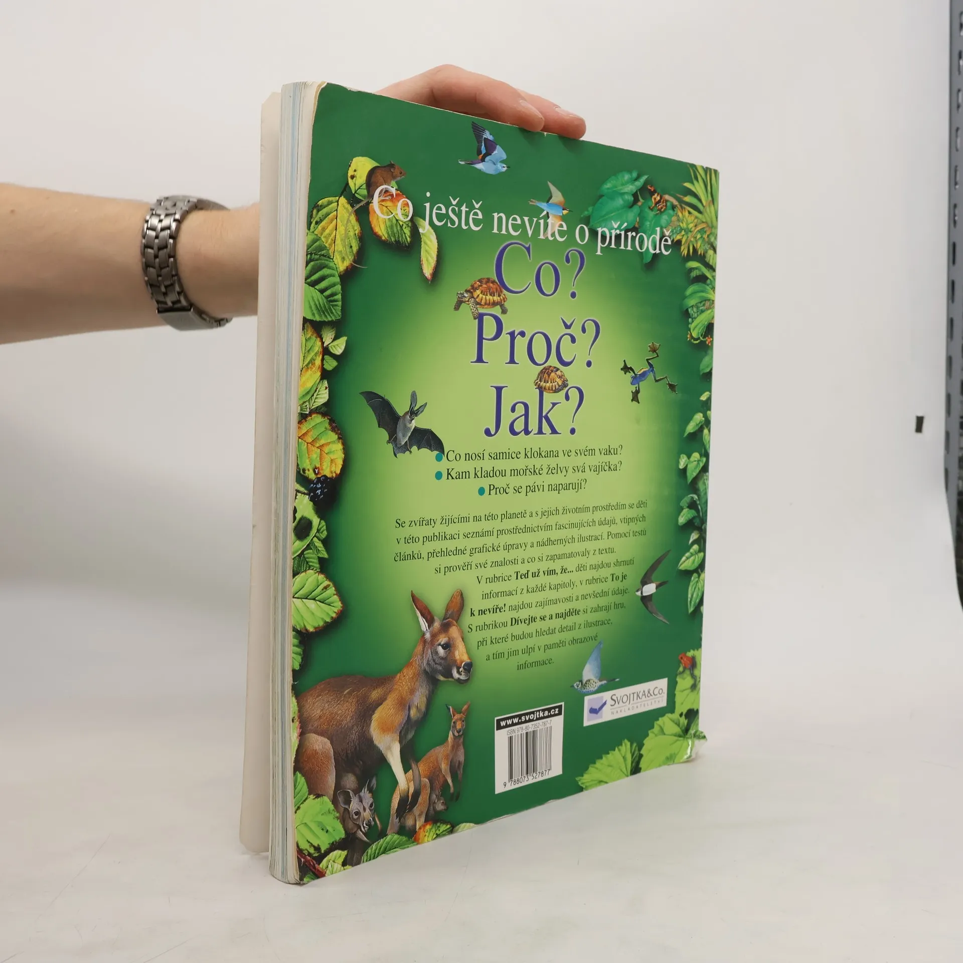 Co nosí klokan ve své kapse? Kam kladou mořské želvy svá vajíčka? Proč se pávi naparují? V této publikaci se děti seznámí se zvířaty žijícími na naší planetě a s jejich životním prostředím prostřednictvím fascinujících údajů, vtipných článků, přehledné grafické úpravy a nádherných ilustrací. Pomocí testů si pak mohou prověřit co si z textu zapamatovaly.