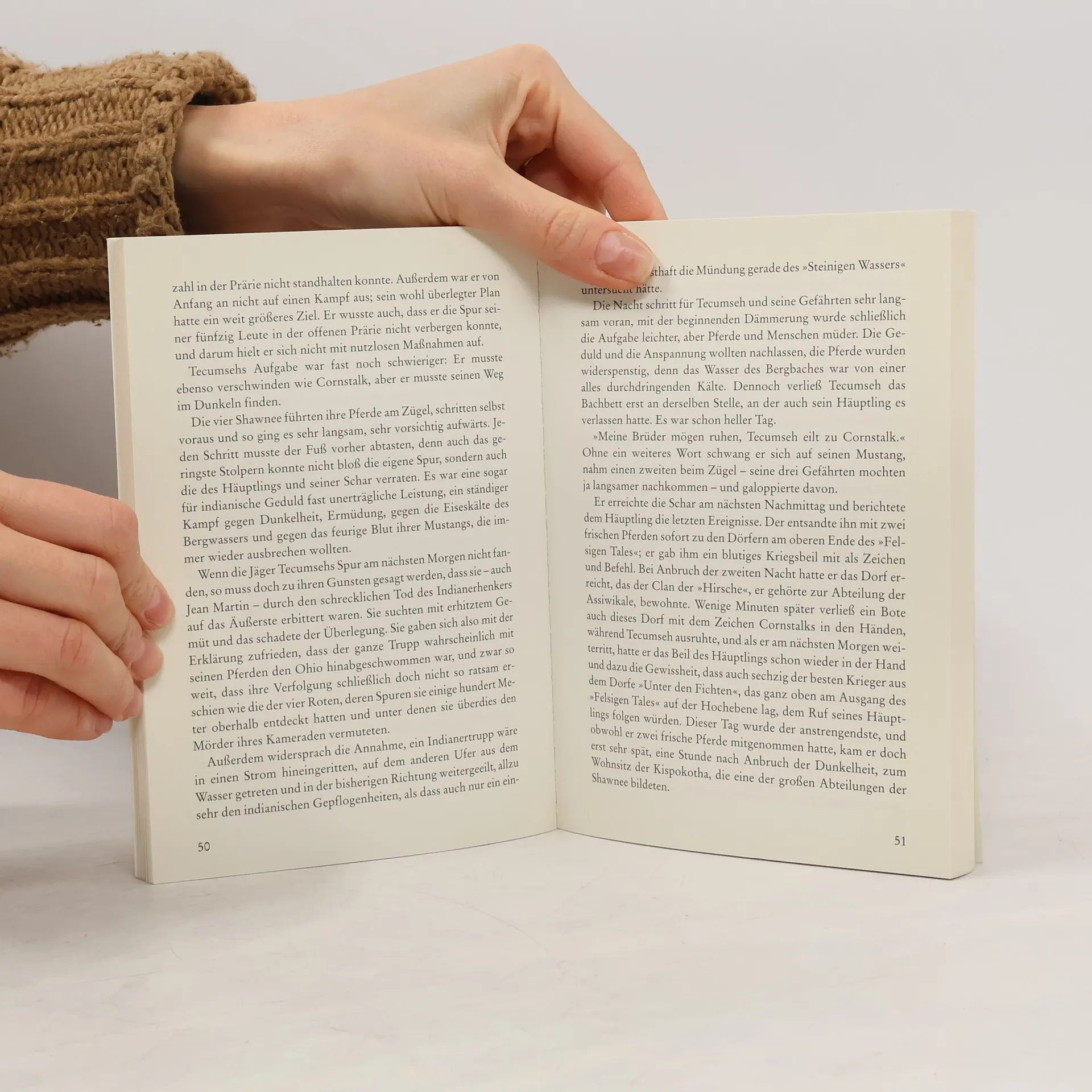 Tecumseh (1768-1813) ist noch ein junger Krieger, als er miterleben muss, wie die Weißen immer weiter in das Gebiet der Snawnee eindringen. Häufig kommt es zu Auseinandersetzungen. Als wieder eine Gruppe weißer Siedler und Jäger die Grenze überschreitet, rauben Tecumseh und seine Gefährten ihnen einige Pferde. Aber der Raub bleibt nicht ungestraft: Die Siedler ergreifen die Indianer und drohen sie zu töten. In der Nacht kann Tecumseh entkommen, er befreit seine Freunde und lockt die weißen Verfolger in eine Falle. Denn inzwischen ist Cornstalk, der große und weise Häuptling der Shawnee, mit vielen Kriegern zur Rettung seiner Stammesbrüder aufgebrochen. Diese Übermacht erwartet die weißen Siedler am Ende einer Schlucht und nimmt sie gefangen. Cornstalk schickt einen der Männer zurück, um den "weißen Vätern" ein Friedensangebot zu unterbreiten. Während der Zeit des Wartens schließt Tecumseh Freundschaft mit Logan, einem einflussreichen Häuptling, und mit Friedrich Wagner, einem deutschen Siedler. Schließlich wird ein Vertrag zwischen vielen Stämmen und der englischen Regierung geschlossen, der den Indianern ihre Jagdgründe zusichert und ein weiteres Vordringen der weißen Kolonisten verhindern soll.