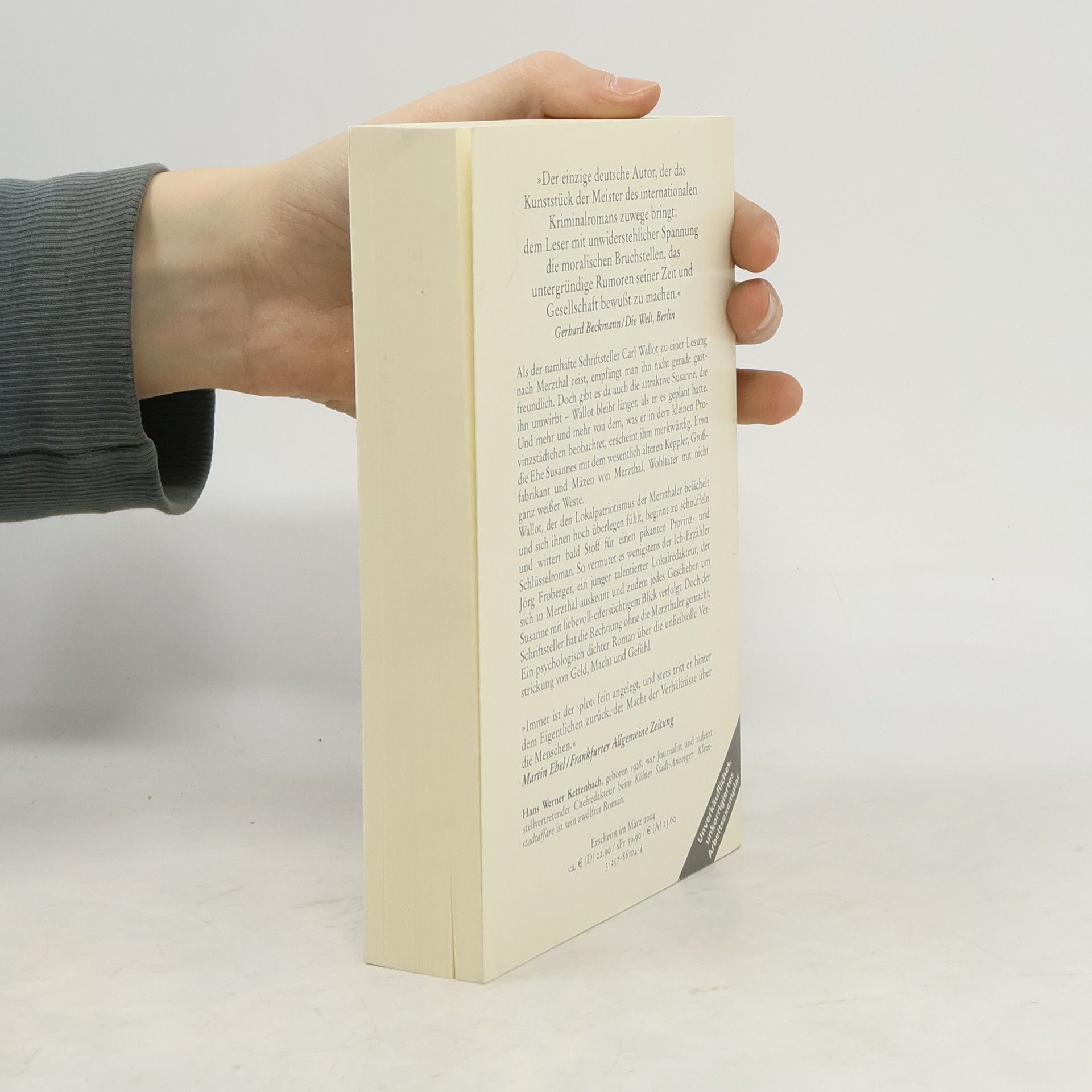 Als der namhafte Schrifsteller Carl Wallot zu einer Lesung nach Merzthal reist, empfängt man ihn nicht gerade gastfreundlich. Doch gibt es da auch die attraktive Susanne, die ihn umwirbt - Wallot bleibt länger, als er es geplant hatte. Und mehr und mehr von dem, was er in dem kleinen Provinzstädtchen beobachtet, erscheint ihm merkwürdig. Etwa die Ehe Susannes mit dem wesentlich älteren Keppler, Großfabrikant und Mäzen von Merzthal, Wohltäter mit nicht ganz weißer Weste. Wallot, der den Lokalpatriotismus der Merzthaler belächelt und sich ihnen hoch überlegen fühlt, beginnt zu schnüffeln und wittert bald Stoff für einen pikanten Provinz- und Schlüsselroman. So vermutet es wenigstens der Ich-Erzähler Jörg Froberger, ein junger talentierter Lokalredakteur, der sich in Merzthal auskennt und zudem jedes Geschehen um Susanne mit liebevoll-eifersüchtigem Blick verfolgt. Doch der Schriftsteller hat die Rechnung ohne die Merzthaler gemacht. Ein psychologisch dichter Roman über die unheilvolle Verstrickung von Geld, Macht und Gefühl