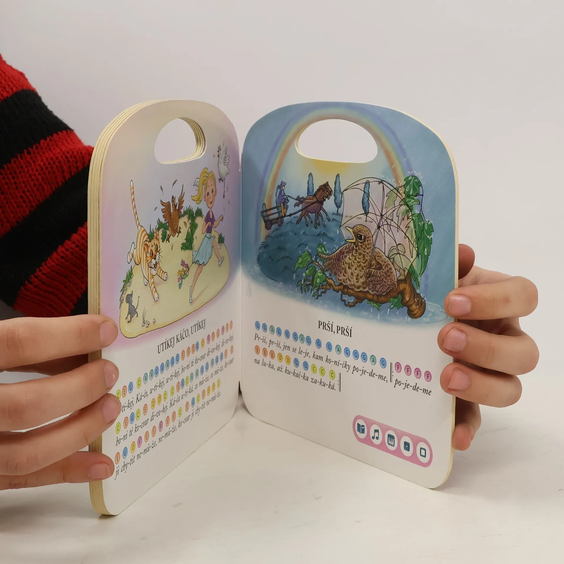 Kniha Zpívánky 2 obsahuje 12 mezi dětmi oblíbených lidových písniček včetně barevných not, které si děti mohou samy přehrát pomocí Kouzelného piana. Mohou si zahrát a zazpívat známé písničky jako Zajíček v své jamce, Já do lesa nepojedu, Pásla ovečky, Já jsem muzikant, Prší prší, Utíkej Káčo, utíkej, Čížečku, čížečku, Když jsem já sloužil, Kalamajka, Když jsem husy pásala, Šla Nanynka do zelí a Běží liška k táboru. Písně v knize Zpívánky 2 si můžete přehrát ve 2 verzích - zpívané a instrumentální podobě. Pomocí ikony knihy a ikony jednoduchého kvízu se děti učí porozumět zpívanému textu. Kniha obsahuje přes 500 zvuků a textů. Je namluvena Andreou Elsnerovou. Interaktivní mluvící kniha je určena pro děti od 3 do 7 let.