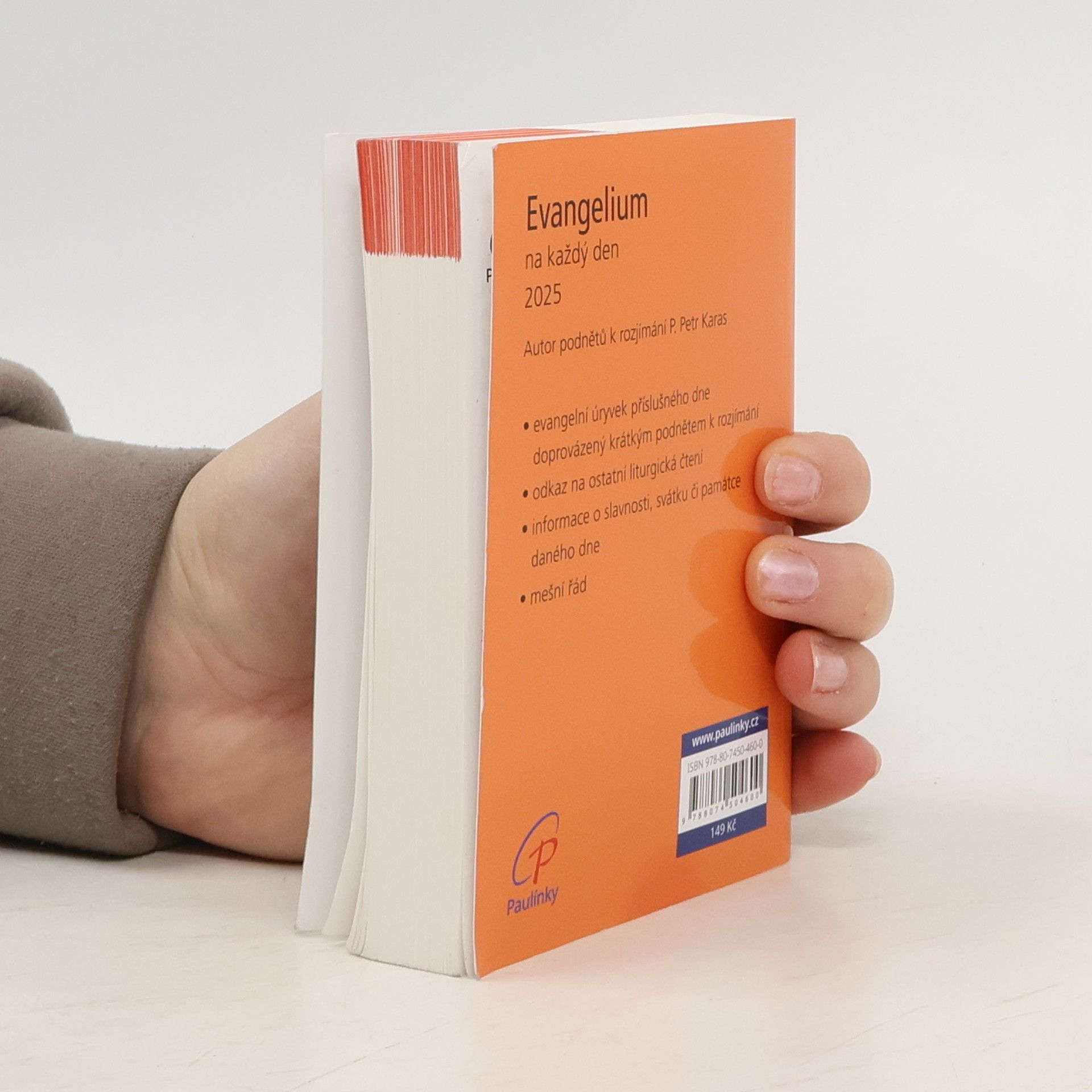 Knížka kapesního formátu je každodenním průvodcem pro ty, kdo touží číst a rozjímat evangelium v rytmu liturgie církve. Evangelní úryvek příslušného dne je doprovázen krátkým komentářem. Podněty k rozjímání na rok 2025 připravil P. Petr Karas. Evangelium dne je uvedeno v plném znění. Nechybí však odkaz na ostatní liturgická čtení a informace o slavnosti, svátku či památce daného dne. Pokud vás zajímají další knihy, ve kterých najdete témata k zamyšlení nad biblickými texty, připravili jsme speciální kategorii: Biblické zamyšlení na každý den.