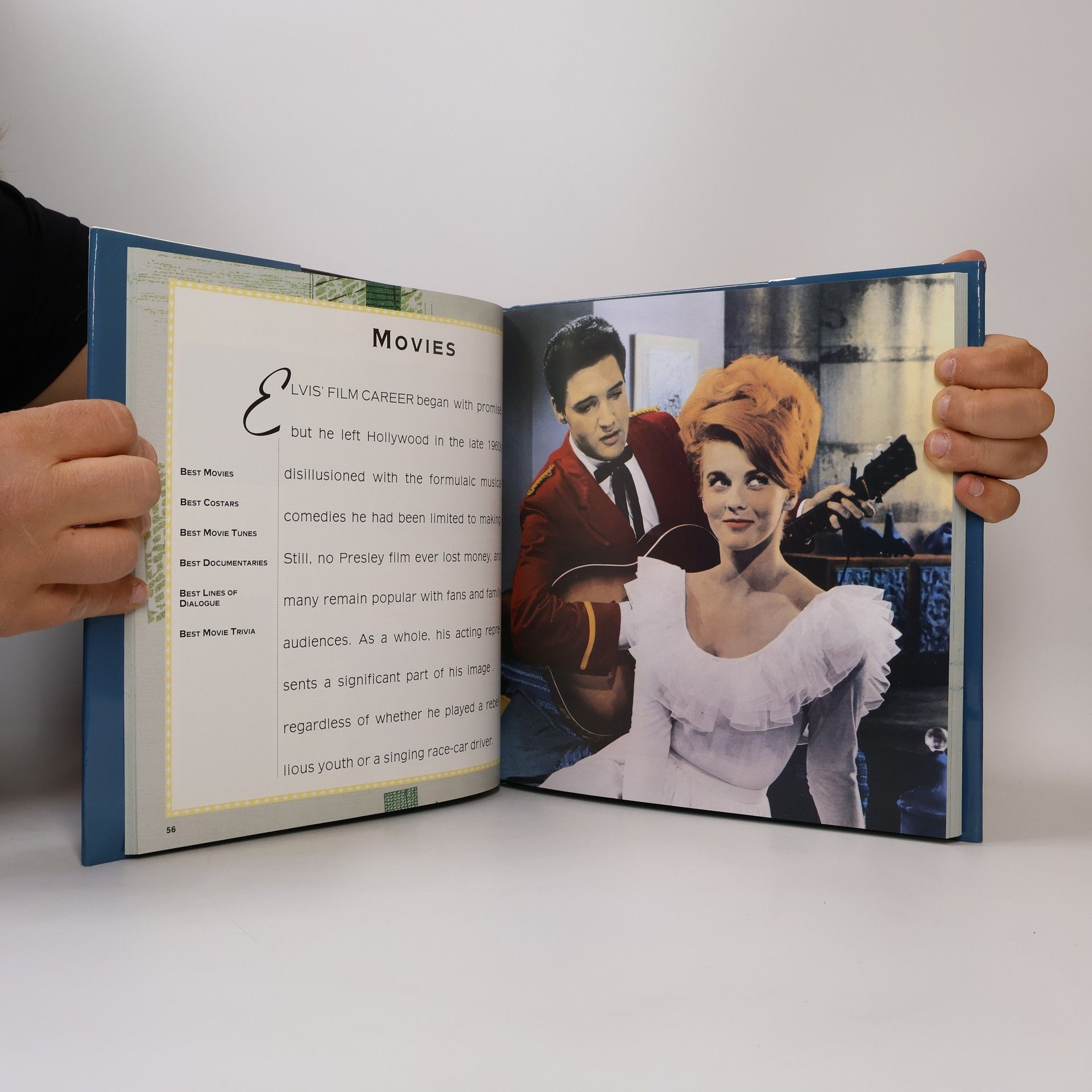 Best of Elvis sorts through Elvis' career, private life, and public image to present lists that detail the best of Elvis on any given subject. Some of the lists offer a thought-provoking discussion of each entry, while others are simply itemized lists. The subjects range in tone from the serious (Best Controversies About Elvis) to the unusual (Best Elvis-Related Records) to the humorous (Best Bumper Stickers). Each list is illustrated with a variety of photographs, from familiar publicity shots to rare candid snaps taken by fans or newspaper photographers. Though the lists thoroughly cover the breadth of Elvis' career, they focus on the highlights of that career and convey why Elvis became as celebrated as he was-and still is.