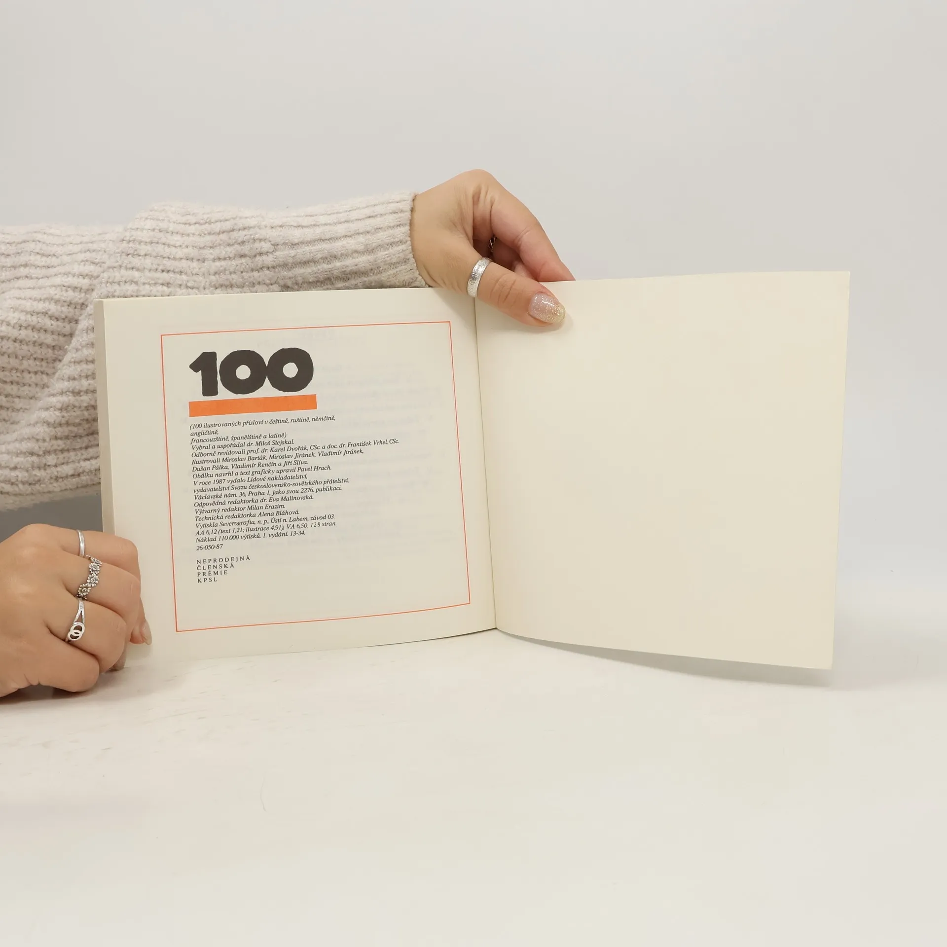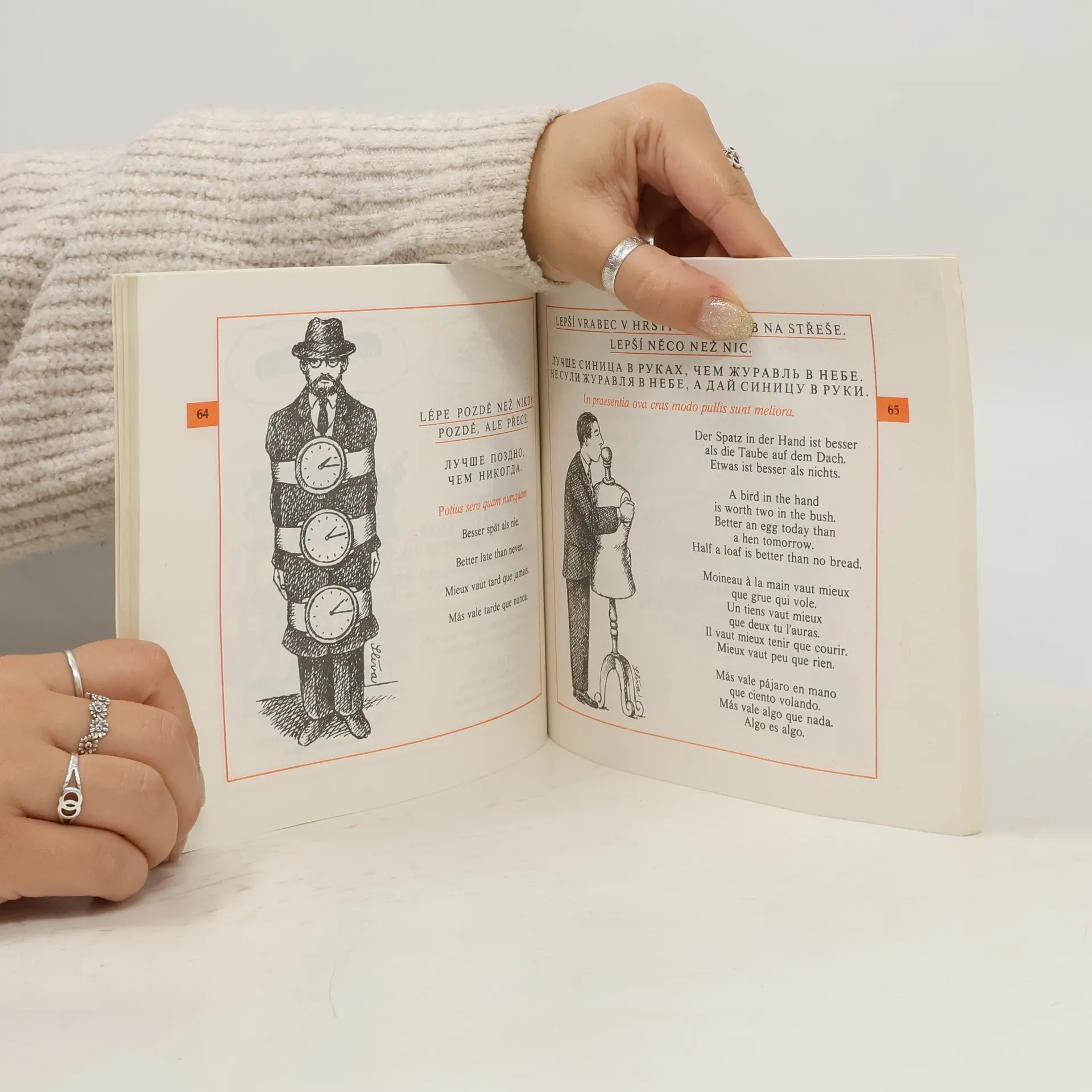 100 ilustrovaných přísloví v češtině, ruštině, němčině, angličtině, francouzštině a španělštině. Ilustrovali Miroslav Barták, Miroslav Jiránek, Vladimír Jiránek, Dušan Pálka, Vladimír Renčín a Jiří Slíva.