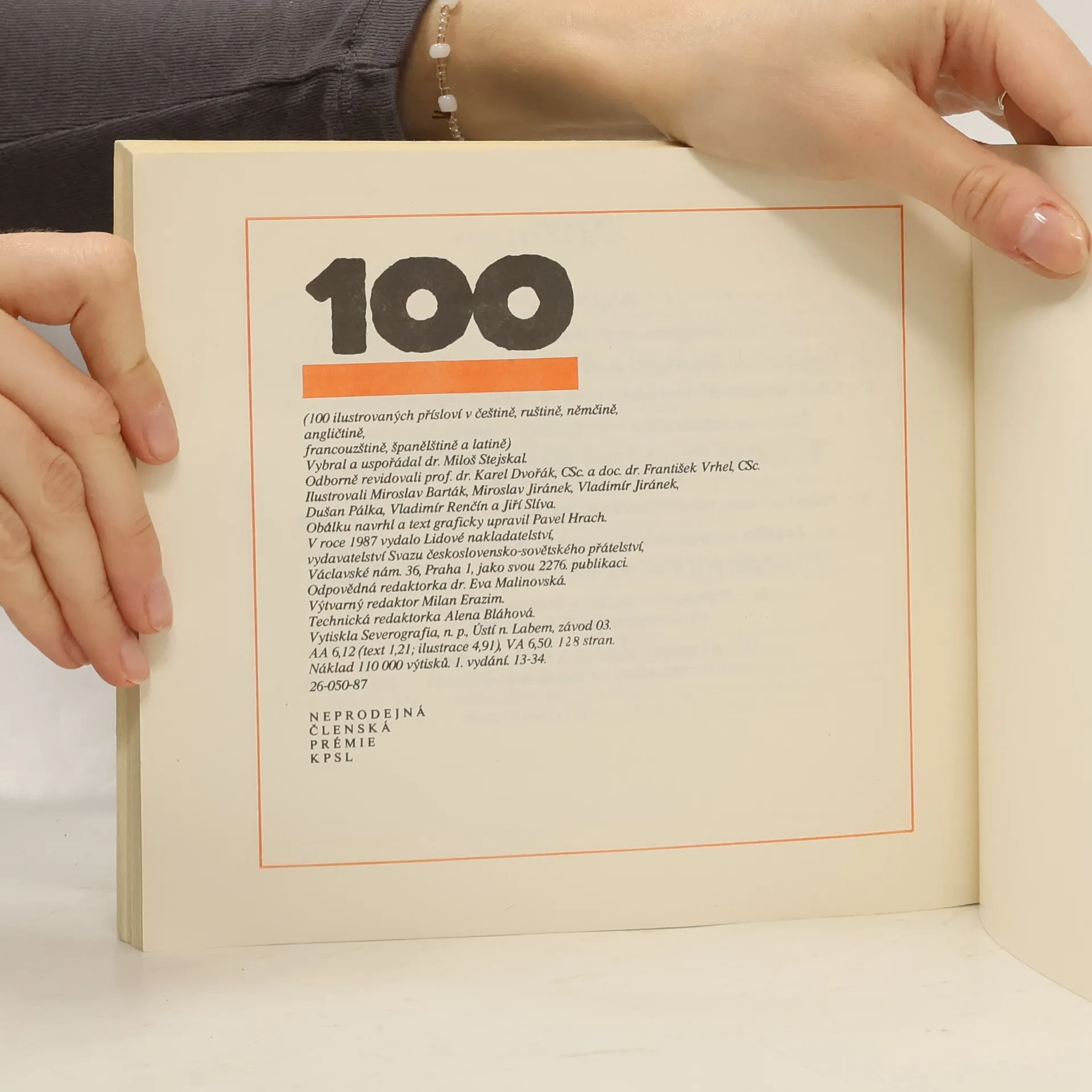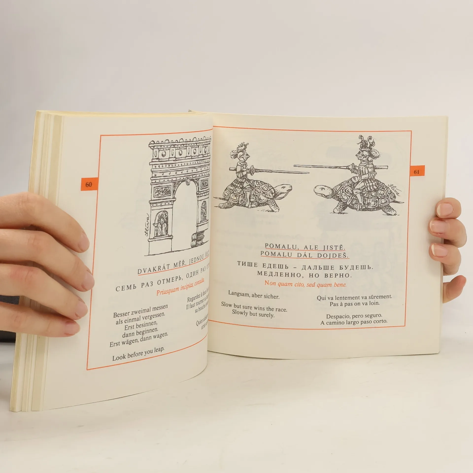 100 ilustrovaných přísloví v češtině, ruštině, němčině, angličtině, francouzštině a španělštině. Ilustrovali Miroslav Barták, Miroslav Jiránek, Vladimír Jiránek, Dušan Pálka, Vladimír Renčín a Jiří Slíva.