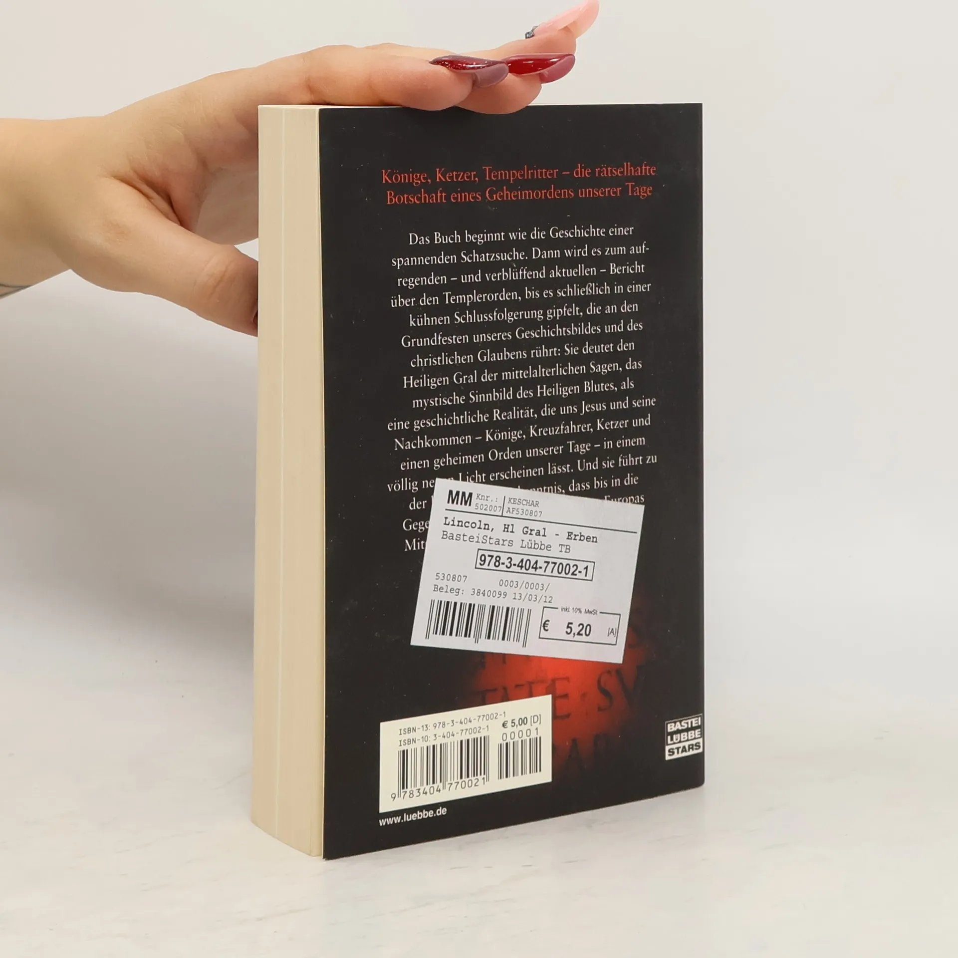 Könige, Ketzer, Tempelritter - die rätselhafte Botschaft eines Geheimordens unserer Tage Das Buch beginnt wie die Geschichte einer spannenden Schatzsuche. Dann wird es zum aufregenden - und verblüffend aktuellen - Bericht über den Templerorden, bis es schließlich in einer kühnen Schlussfolgerung gipfelt, die an den Grundfesten unseres Geschichtsbildes und des christlichen Glaubens rührt: Sie deutet den Heiligen Gral der mittelalterlichen Sagen, das mystische Sinnbild des Heiligen Blutes, als eine geschichtliche Realität, die uns Jesus und seine Nachkommen - Könige, Kreuzritter, Ketzer und einen geheimen Orden unserer Tage - in einem völlig neuen Licht erscheinen lässt. Und sie führt zu der bestürzenden Erkenntis, dass bis in die Gegenwart hinein viele große Denker Europas Mitglieder einer okulten Gesellschaft sind ...