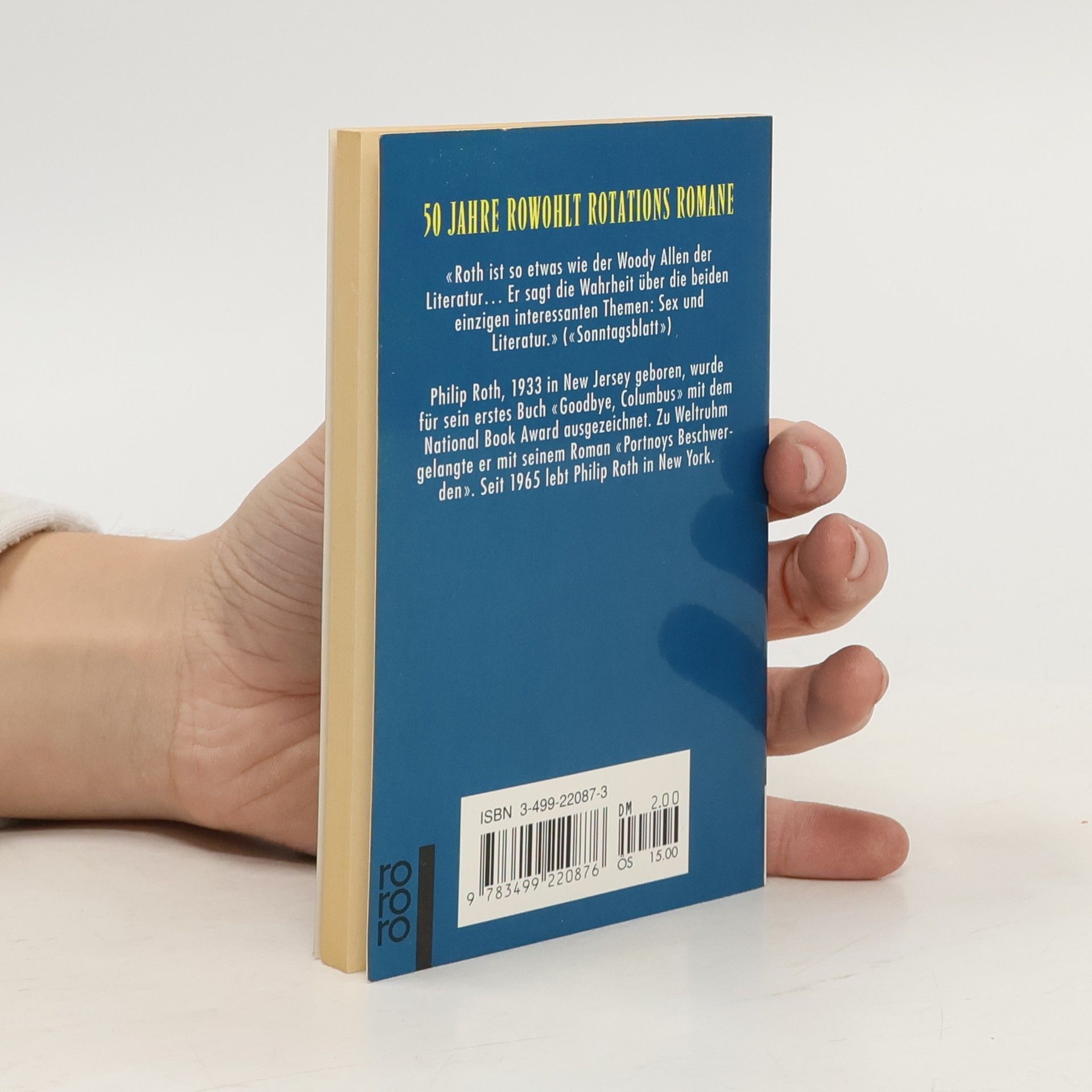 Ein kleiner Band mit zwei Erzählungen und einer kurzen Rede Philip Roths anläßlich eines Preises, den er erhielt, entnommen sind die Erzählungen anderen Büchern, herausgegeben wurde diese Zusammenstellung im Rahmen der Reihe "50 Jahre Rowohlt Rotations Romane".