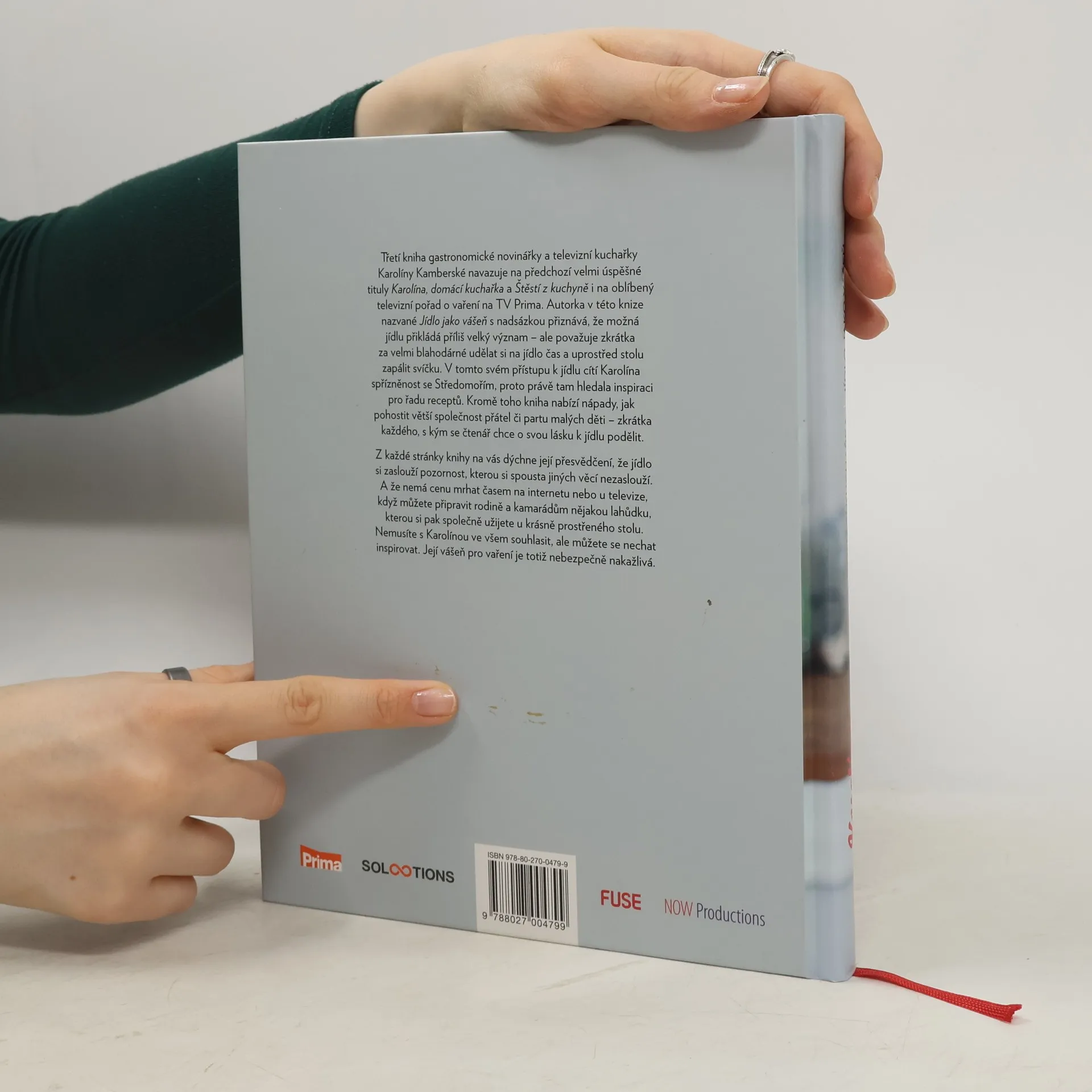 Třetí kniha gastronomické novinářky a televizní kuchařky Karolíny Kamberské navazuje na předchozí velmi úspěšné tituly Karolína, domácí kuchařka a Štěstí z kuchyně i na oblíbený televizní pořad o vaření na TV Prima. Autorka v této knize nazvané Jídlo jako vášeň s nadsázkou přiznává, že možná jídlu přikládá moc velký význam – ale považuje zkrátka za velmi blahodárné udělat si na jídlo čas a uprostřed stolu zapálit svíčku. V tomto svém přístupu k jídlu cítí Karolína spřízněnost se Středomořím, proto právě tam hledala inspiraci pro řadu receptů. Kromě toho kniha nabízí nápady, jak pohostit větší společnost přátel či partu malých děti - zkrátka každého, s kým se čtenář chce o svou lásku k jídlu podělit. Na každé stránce knihy na vás dýchne její přesvědčení, že jídlo si zaslouží pozornost, kterou si spousta jiných věcí nezaslouží. A že nemá cenu mrhat časem na internetu nebo u televize, když můžete připravit rodině a kamarádům nějakou lahůdku, kterou si pak společně užijete u krásně prostřeného stolu. Nemusíte s Karolínou ve všem souhlasit, ale můžete se nechat inspirovat. Její vášeň pro vaření je totiž nebezpečně nakažlivá.