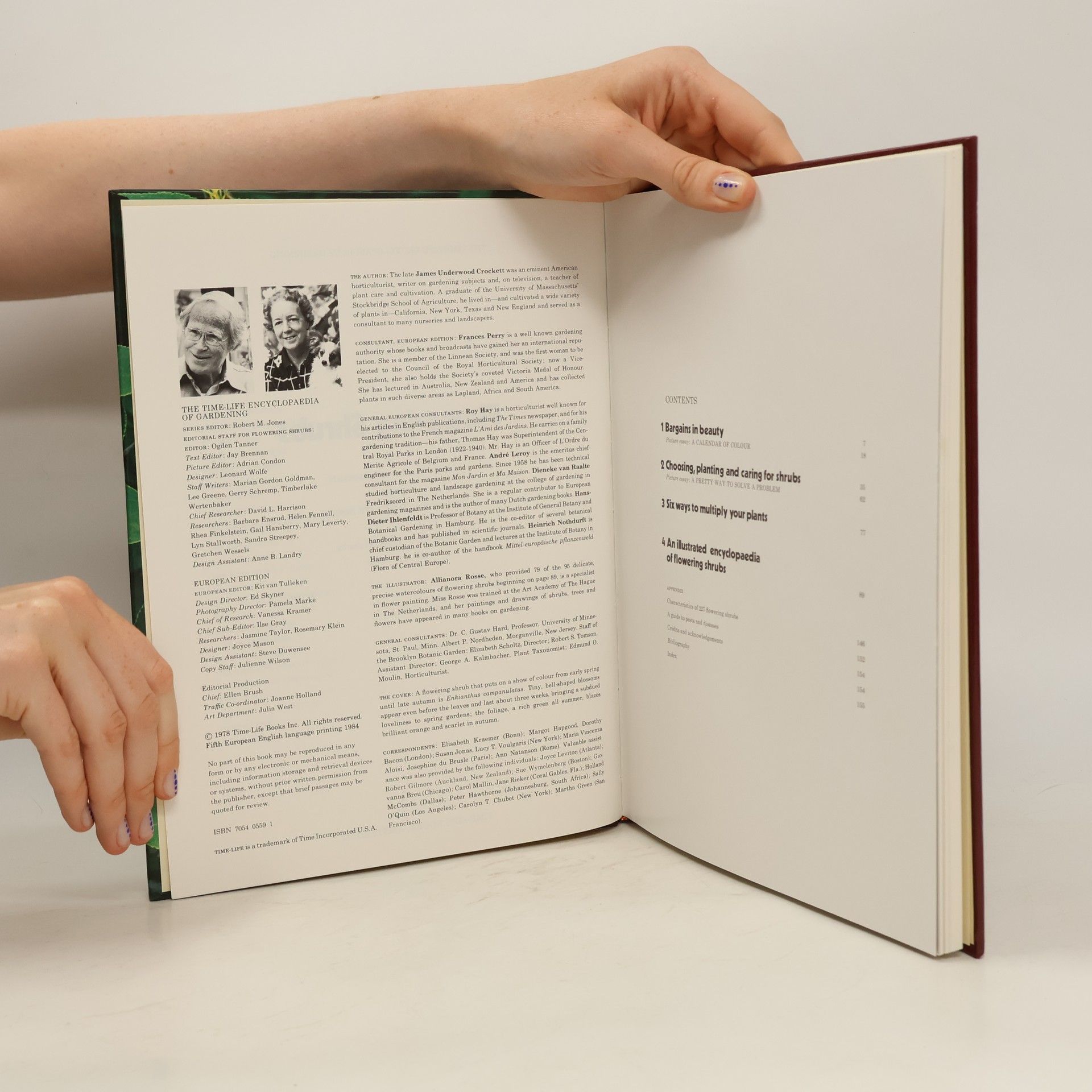 This is one of the original books in the 1972 series the “Time Life Encyclopedia of Gardening”, which includes twelve books titled and about the following topics: Perennials --Trees --Vegetables & fruits --Foliage house plants --Annuals --Roses --Landscape gardening --Lawns & ground covers --Flowering house plants --Bulbs --Evergreens --Flowering shrubs. These books are geared towards homeowners and all were written by James Underwood Crockett, an accomplished gardener and eminent horticulturist.
