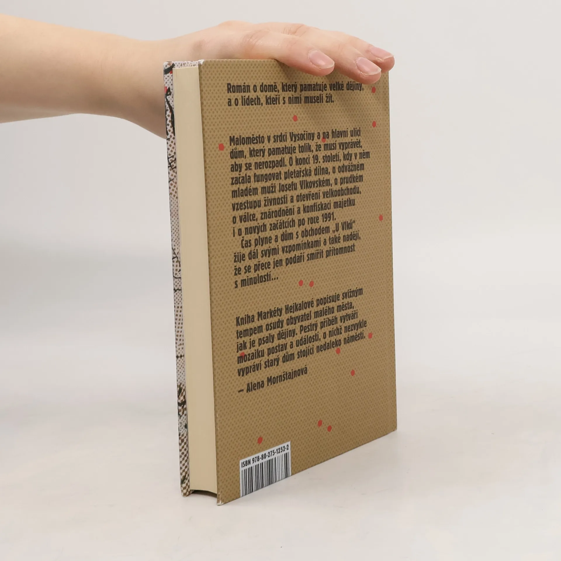 Román o pomíjivosti času a neměnnosti lidských životů.Starý dům na hlavní ulici kousek pod náměstím v malém městě na Vysočině jako by měl svou vlastní paměť. Osudy jeho obyvatel se do jeho stěn zapisovaly od roku 1695 a dům má co vyprávět. A tak vypráví. Především o konci devatenáctého století, kdy v něm začala fungovat pletařská dílna, z níž později vznikla velká a dodnes fungující továrna. O odvážném mladém muži Josefu Vlkovském, který si zde roku 1925 otevřel obchod s potravinami. O prudkém vzestupu živnosti, otevření velkoobchodu, ale i o válečných omezeních, rodinné tragédii, znárodnění a konfiskaci majetku. Dům vypráví svůj vlastní příběh, prolínající se s tragickým osudem ředitele textilní továrny Knopa, a pokračuje přes nové začátky a změny v devadesátých letech až do současnosti. Čas plyne, dům s obchodem „U Vlků“ zůstává. Skrze studentku Anežku si pak současnost podá na usmířenou ruku s minulostí. Markéta Hejkalová na pozadí vyprávění o historii jednoho domu postupně odkrývá silné osudy obyvatel kraje uprostřed naší země.