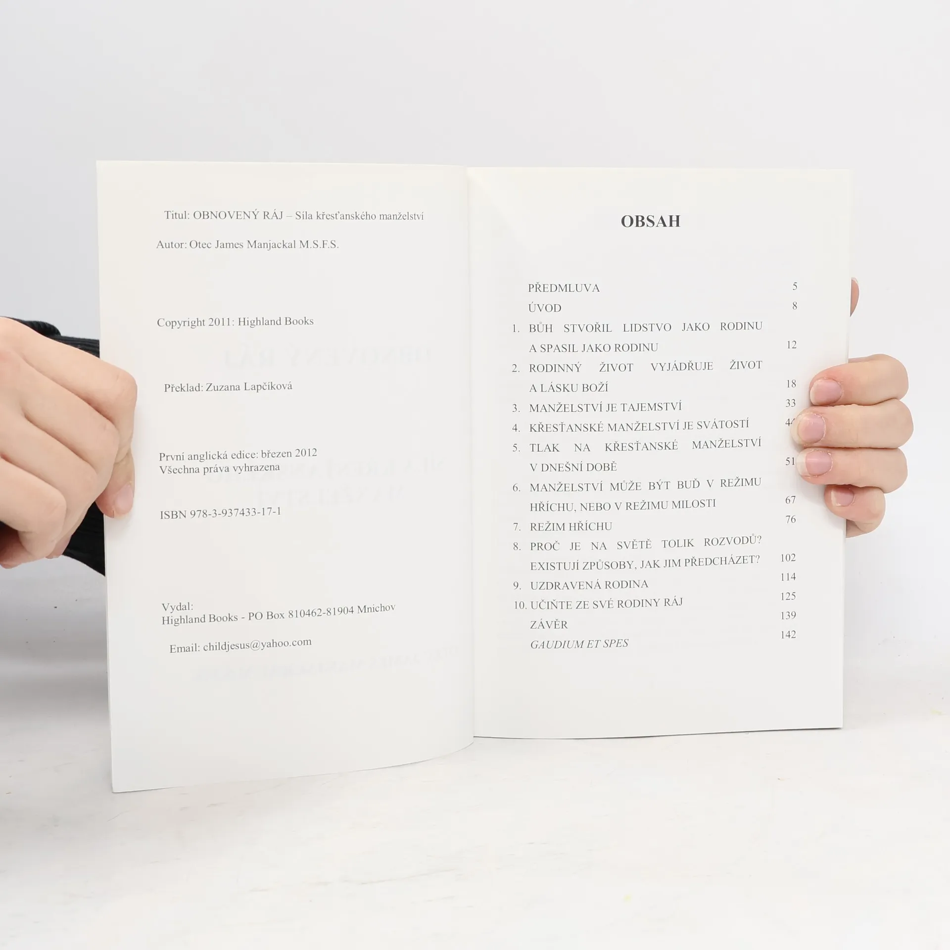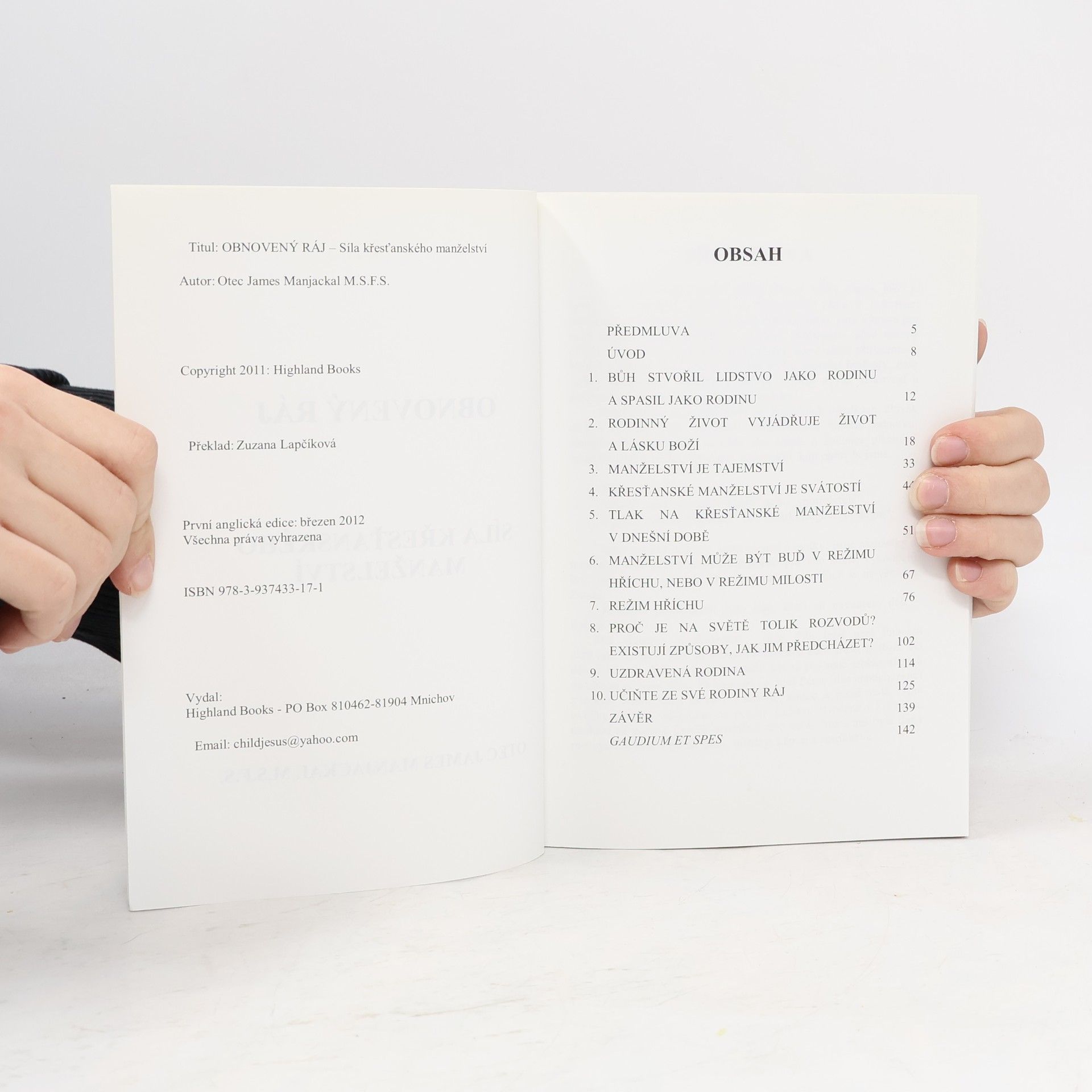 Tato kniha je plodem tisíců hodin rozhovorů s manželskými páry a nastávajícími manžely ve světle třicetileté služby naplněné Duchem svatým. Otec James se setkal s utrpením; viděl jsem, jak na jeho rameno stékaly slzy zoufalství, viděl jsem, jak přináší zraněným mír namísto hněvu a frustrace, smíření těm, kterým se rozpadl život, moudrost a odvahu těm, kdo ztráceli naději, a víru těm, kdo potřebovali setkání s Bohem. Tato kniha je výsledkem díla pevně zakotveného v Boží moudrosti - o tom, kým jsme a kým máme být.