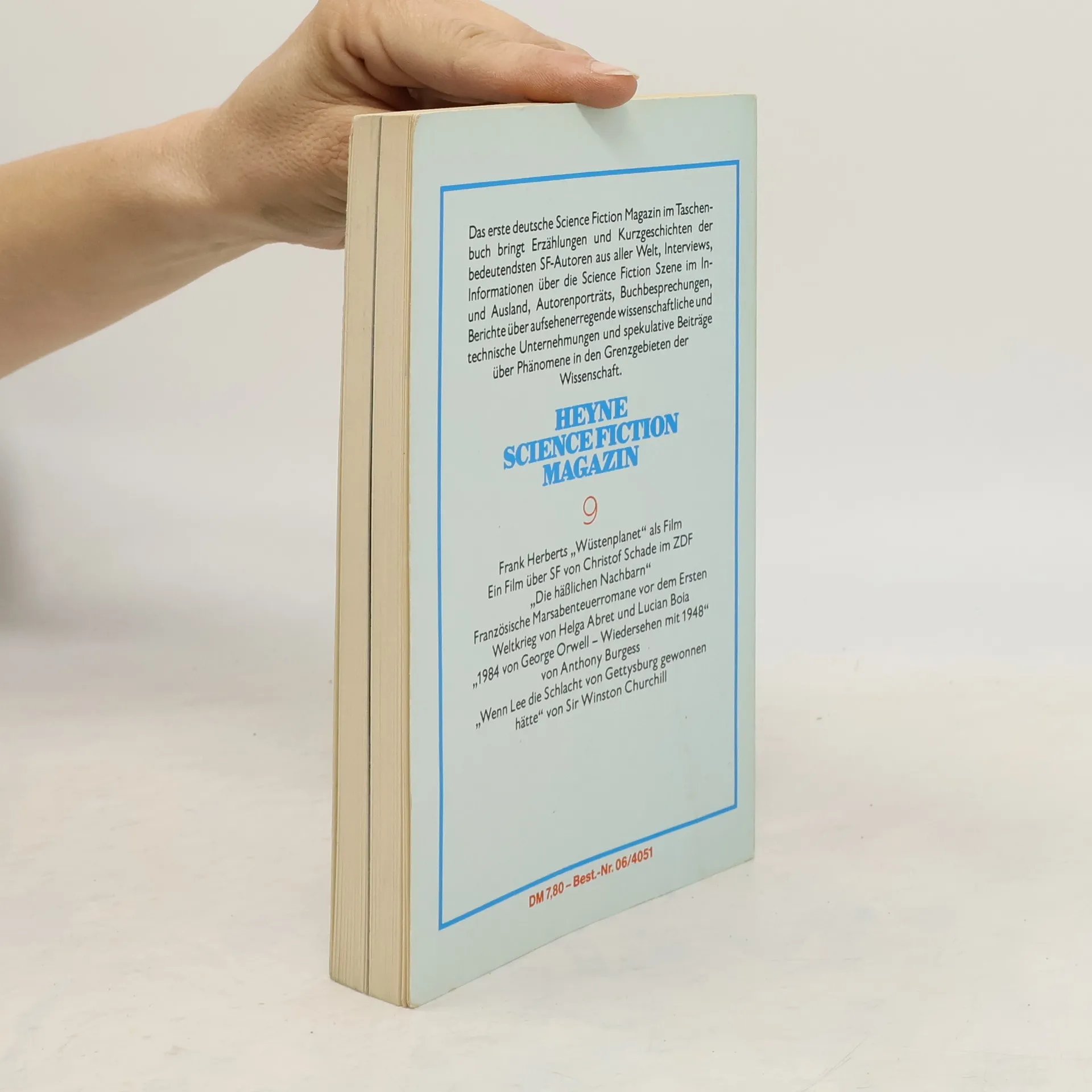 Inhalt: Awards Interview mit einem Kaputologen (1983) (D) Isaac Asimov - Entdeckt! (Found! (1978)) Joern J. Bambeck - Die Entdeckungsgeschichte von Nr. 7, Nr. 8 und Nr. 9 Marcel Bieger - Carr, Cirque (Rezension) Walter Buehler - Behrens, Die Fernseh-Liga (Rezension) Werner Fuchs - Abenteuer SF: Ein Film von Rose Aichele Christian Haderer - Exposed Ronald M. Hahn - Aus deutschen und anderen Landen Dieter Hasselblatt - Genau phantasierter Zukunfts-Zoo Inge Holm - Wer ist's? Wolfgang Jeschke - Die Angst der Maechtigen vor der Macht der Phantasie Wolfgang Jeschke - Editorial Herbert Kiessling - Brief aus der DDR Walter-Joerg Langbein - Konrad Karbe - Science Fiction Kleinkunst Thomas Le Blanc - Menschenrechte Stanislaw Lem - Prognose ueber die Entwicklung der Biologie bis zum Jahr 2040 (Prognoza rozwoju biologii do roku 2040 (1981)) Ellin A. Nickelsen - Lessing, Shikasta (Rezension) Horst-Guenter Rubahn - Die Selbstorganisation des Universums Guido Sprenger - U Ian Watson - Denken wir eine Weile ueber die Evolution nach ... (Alien embassy (1977)) Ian Watson - Die Raeume des Paradieses (The rooms of paradise (1978)) Ian Watson - Die Rhetorik der Erkenntnis: Ueber die SF Michael Bishops (The rhetoric of recognition: The Science Fiction of Michael Bishop (1982)) Guenter Zettl, Ian Watson - Interview mit Ian Watson