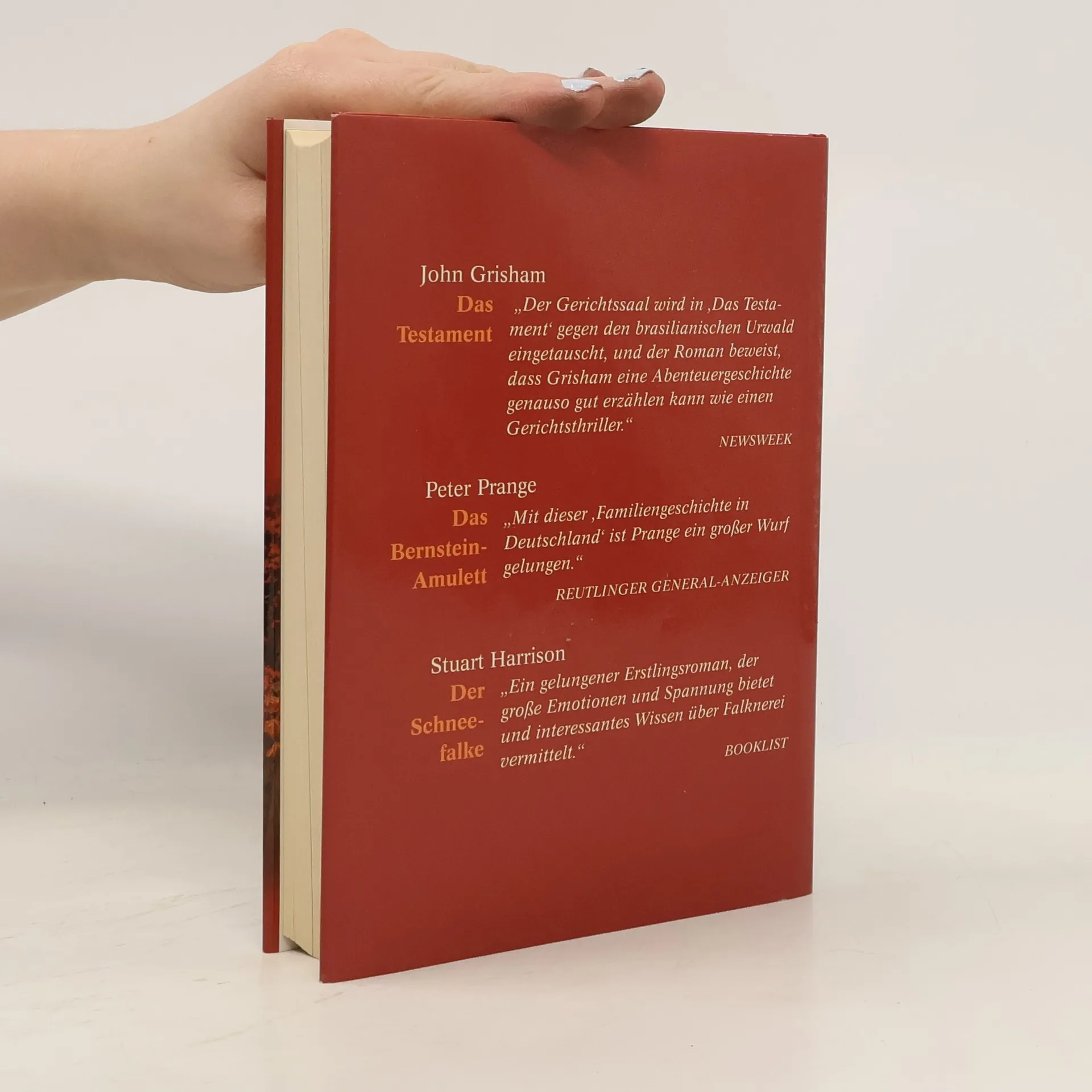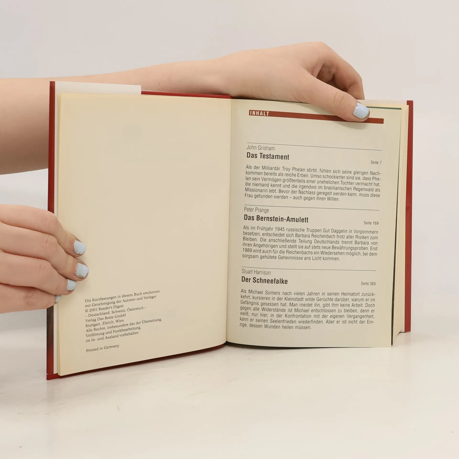 Reader's digest Auswahlbücher: Das Testament. Das Bernsteinamulett. Der Schneefalke, John Grisham, Peter Prange, Stuart Harrison