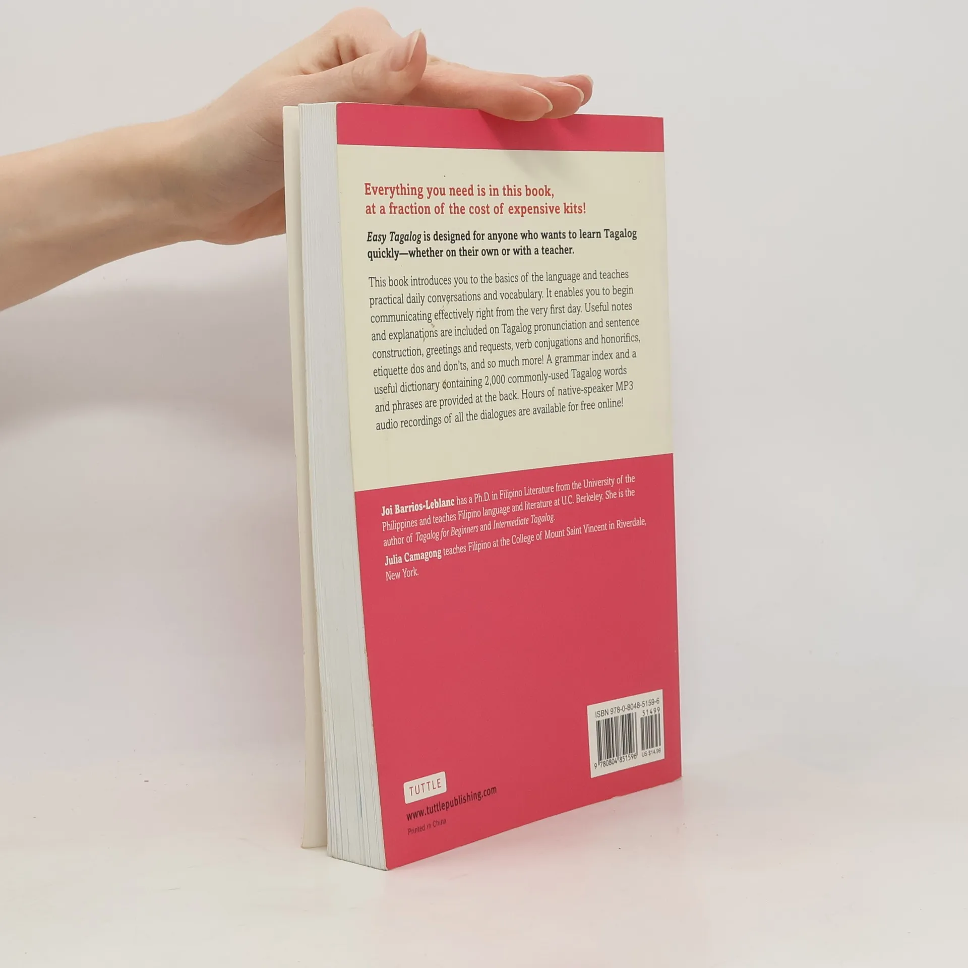 Easy Tagalog brings the Tagalog language and culture of the Philippines alive, giving you all the basics you need to start speaking Tagalog immediately. This invaluable guide introduces all the basics of the Tagalog language, as well as vocabulary and tips for practical daily conversation. All dialogues are highly practical and authentic and illustrated with manga illustrations for easy memorization. There is also a glossary of commonly used words and phrases, useful notes, pronunciation, greetings, sentence structure, idiomatic expressions, etiquette, and cultural dos and don'ts included throughout. A complete language course and pocket dictionary in one,Easy Tagalog includes: Native speaker audio recordings Useful notes on pronunciation and accents Focus on daily communications Structured, progressive lessons Let Filipino experts Barrios and Camagong teach you how to enjoy this beautiful language. Start learning Tagalog on the plane and begin communicating effectively the moment you land!