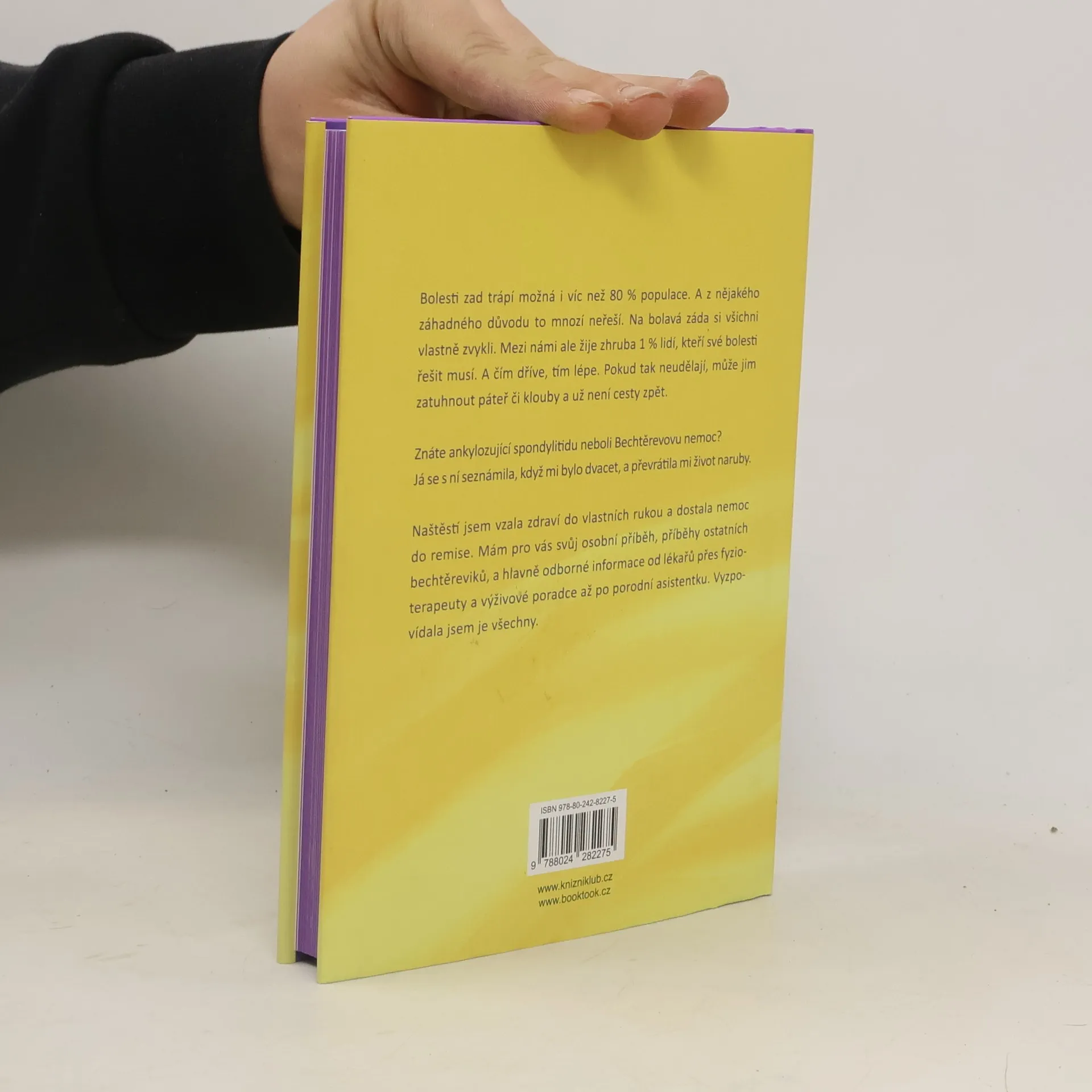 Znáte ankylozující spondylitidu neboli Bechtěrevovu nemoc? Já se s ní seznámila ve dvaceti letech. A převrátila mi život vzhůru nohama. Bolesti zad trápí možná i víc než 80 % populace. A záhadným způsobem to nikomu nevadí. Na bolavá záda si všichni vlastně zvykli. Mezi námi ale žije zhruba 1 % lidí, kteří své bolesti řešit musí. A čím dříve, tím lépe. Pokud tak neudělají, může jim zatuhnout páteř či klouby a už není cesty zpět. Naštěstí jsem vzala zdraví do vlastních rukou a dostala nemoc do remise. Mám pro vás svůj osobní příběh, příběhy ostatních bechtěreviků, a hlavně odborné informace od lékařů přes fyzioterapeuty a výživové poradce až po porodní asistentku. Vyzpovídala jsem je všechny.
