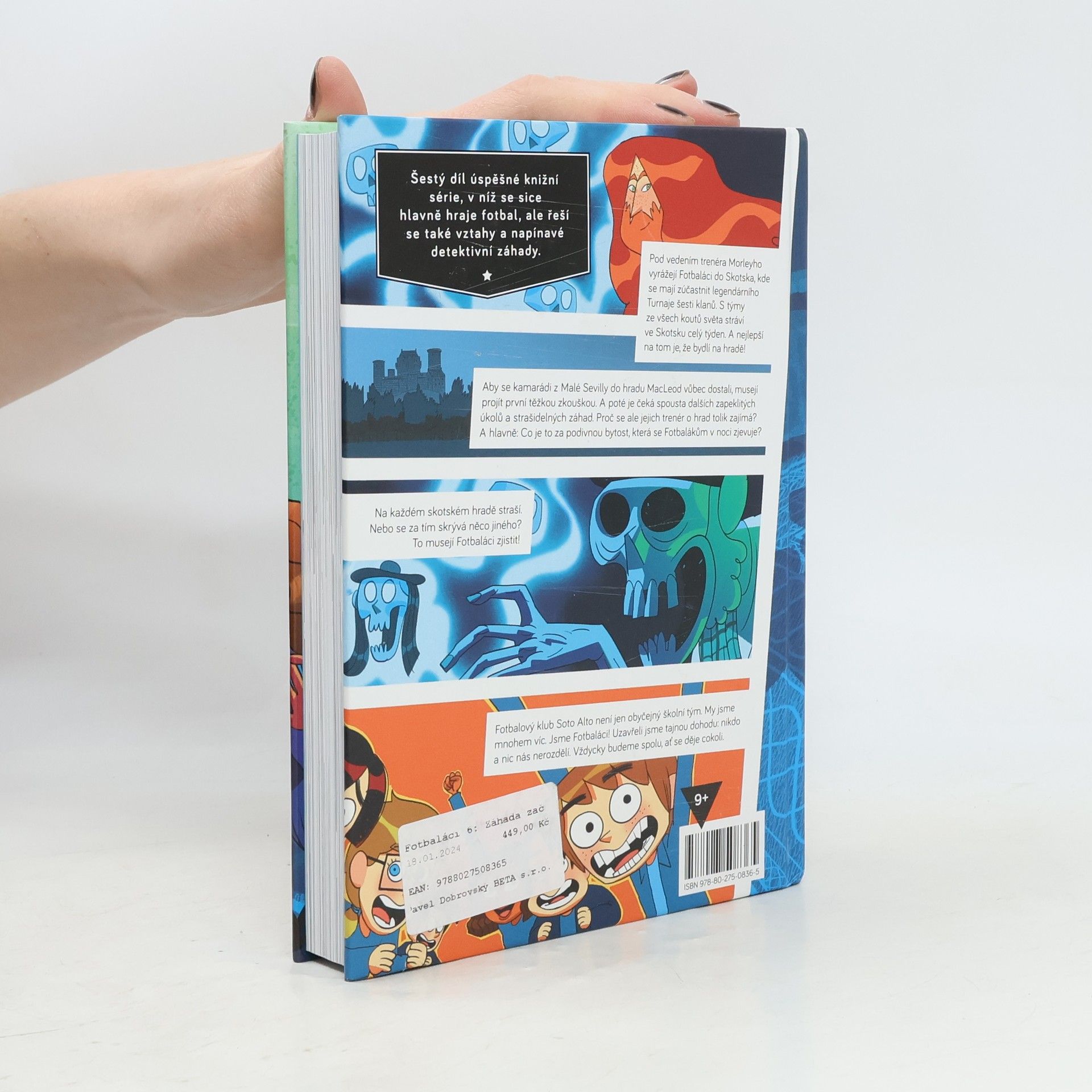 Na každém skotském hradě straší. Nebo je za tím něco jiného? To musí zjistit Fotbaláci! Fotbaláci jedou pod vedením svého trenéra Morleyho do Skotska, kde se mají zúčastnit legendárního Turnaje šesti klanů. Fotbaláci stráví ve Skotsku celý týden, s týmy z celého světa. A nejlepší na tom je, že budou spát na hradě! Budou ovšem muset projít několika těžkými zkouškami, aby se do hradu MacLeod vůbec dostali. Ale proč se jejich trenér o hrad tolik zajímá? A hlavně — co to je za podivnou bytost, která se Fotbalákům každou noc zjevuje? Šestý díl úspěšné série knih, v nichž se sice hlavně hraje fotbal, ale jde také o vztahy a napínavé detektivní záhady.