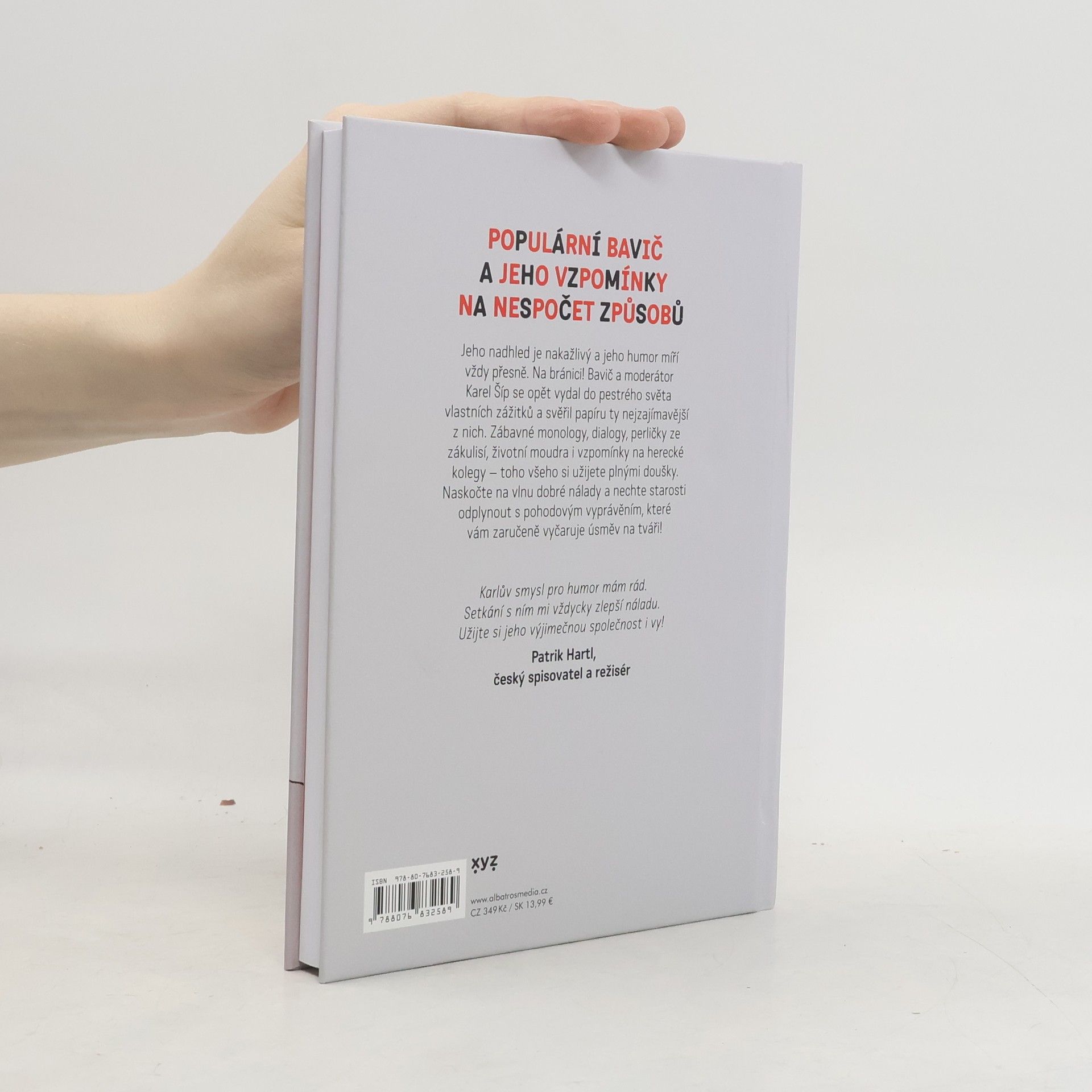 Populární bavič a jeho vzpomínky na nespočet způsobů. Jeho nadhled je nakažlivý a jeho humor míří vždy přesně. Na bránici! Bavič a moderátor Karel Šíp se opět vydal do pestrého světa vlastních zážitků a svěřil papíru ty nejzajímavější z nich. Zábavné monology, dialogy, perličky ze zákulisí, životní moudra i vzpomínky na herecké kolegy – toho všeho si užijete plnými doušky. Naskočte na vlnu dobré nálady a nechte starosti odplynout s pohodovým vyprávěním, které vám zaručeně vyčaruje úsměv na tváři!