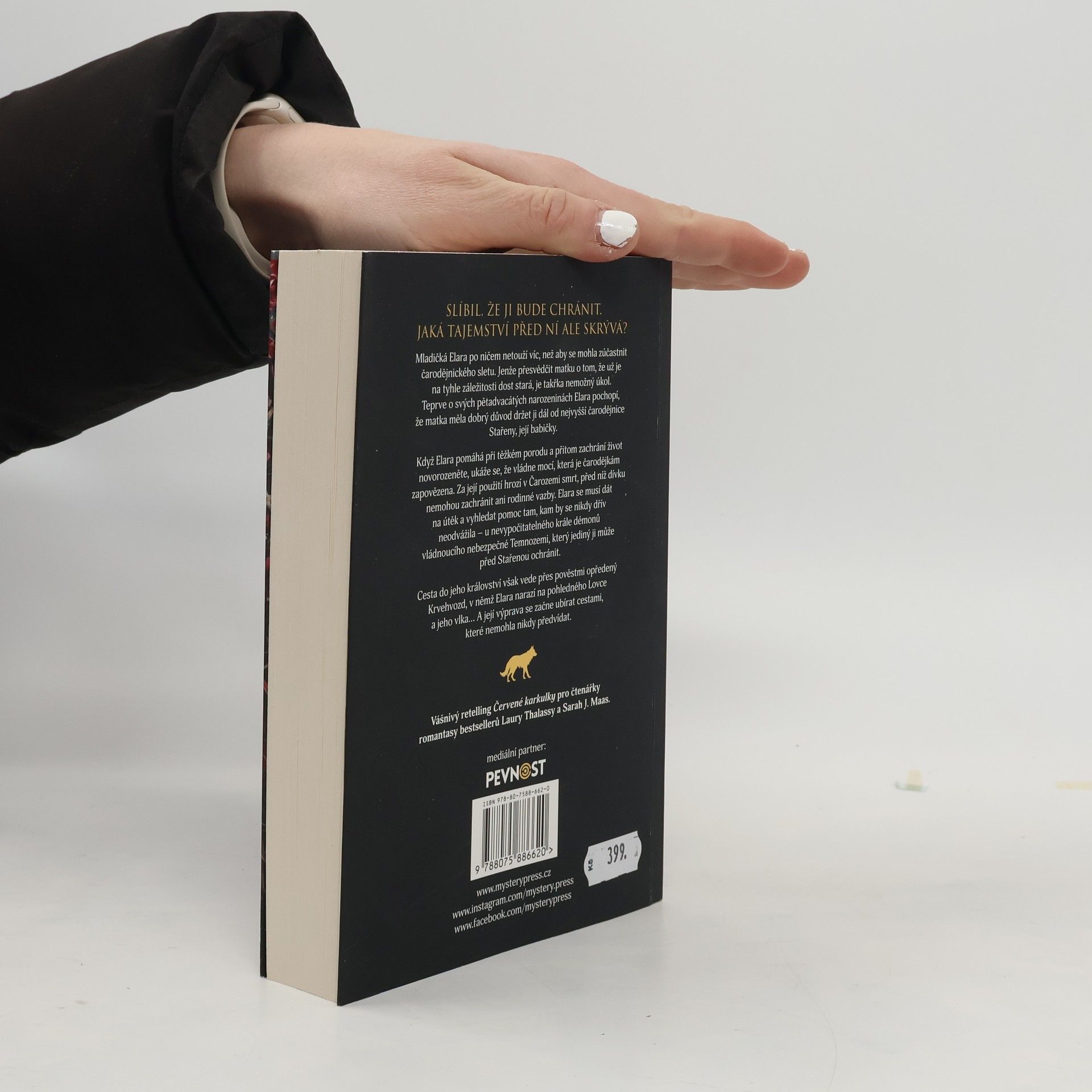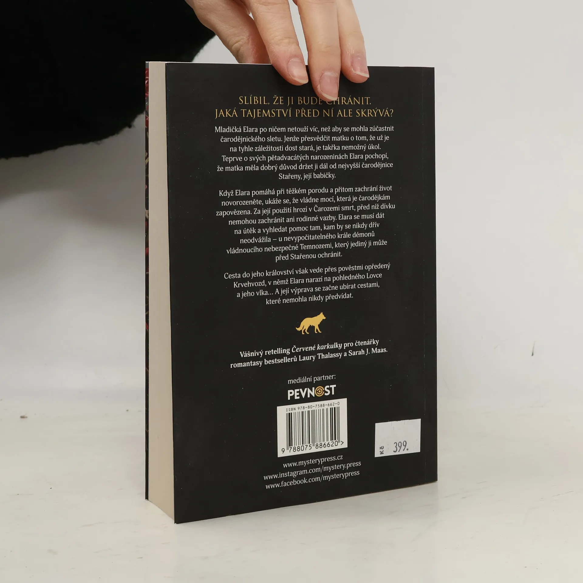 SLÍBIL, ŽE JI BUDE CHRÁNIT. JAKÁ TAJEMSTVÍ PŘED NÍ ALE SKRÝVÁ? Mladičká Elara po ničem netouží víc, než aby se mohla zúčastnit čarodějnického sletu. Jenže přesvědčit matku o tom, že už je na tyhle záležitosti dost stará, je takřka nemožný úkol. Teprve o svých pětadvacátýchnarozeninách Elara pochopí, že matka měla dobrý důvod držet ji dál od nejvyšší čarodějnice Stařeny, její babičky. Když Elara pomáhá při těžkém porodu a přitom zachrání život novorozeněte, ukáže se, že vládne mocí, která je čarodějkám zapovězena. Za její použití hrozí v Čarozemi smrt, před níž dívku nemohou zachránit ani rodinné vazby. Elara se musí dát na útěk a vyhledat pomoc tam, kam by se nikdy dřív neodvážila – u nevypočitatelného krále démonů vládnoucího nebezpečné Temnozemi, který jediný ji může před Stařenou ochránit. Cesta do jeho království však vede přes pověstmi opředený Krvehvozd, v němž Elara narazí na pohledného Lovce a jeho vlka… A její výprava se začne ubírat cestami, které nemohla nikdy předvídat.